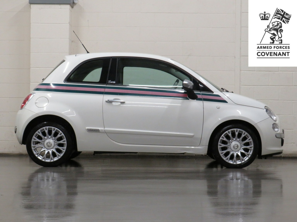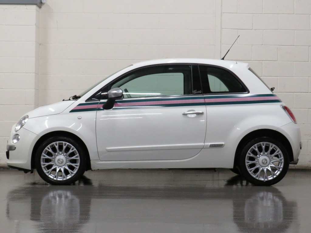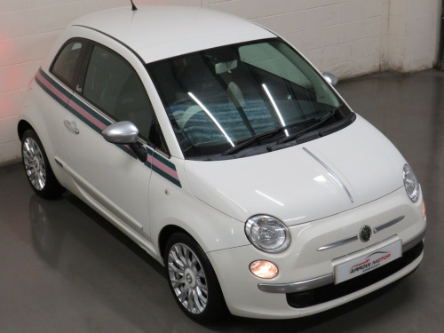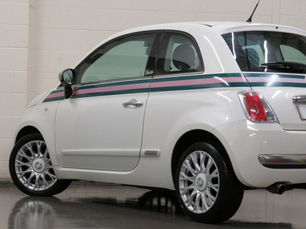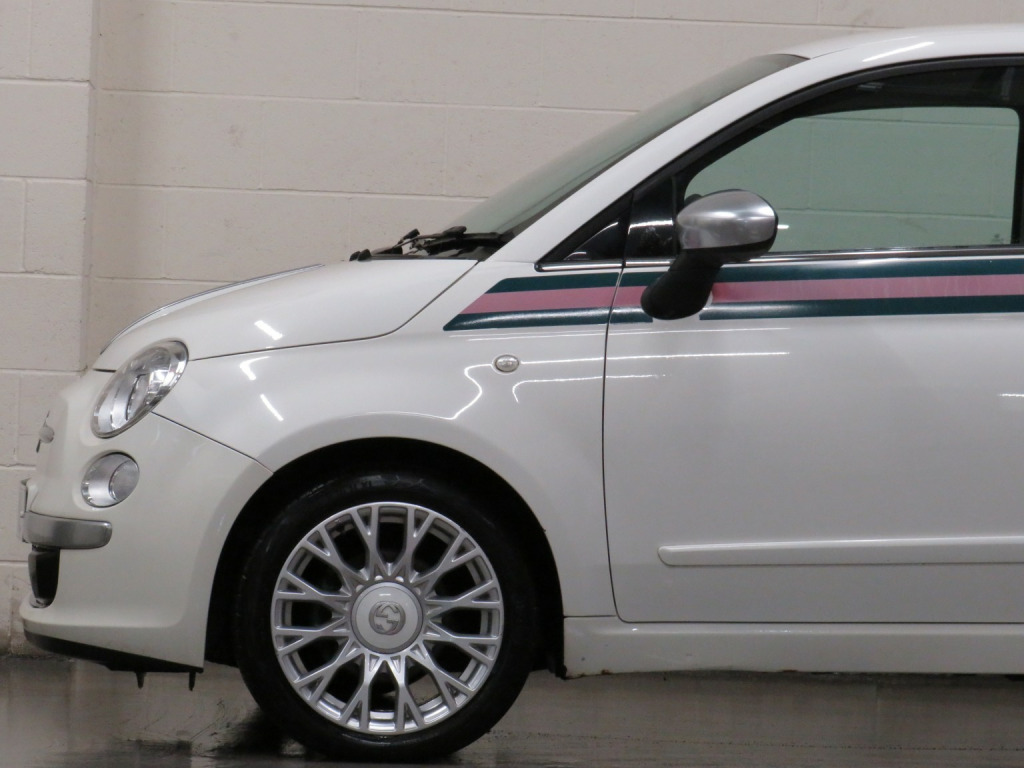 Arrow Motor Company are pleased to present this fantastic Fiat 500 By Gucci Edition, finished in the stunning White Pearl Paintwork, with contrasting Gucci Web Tri-Colour Leather Interior. Equipped with Fiats Award Winning TwinAir 875cc Petrol 2-Cylinder Turbocharged Engine capable of producing 85bhp whilst providing the most economical of drivers with a highly respectable 68.9mpg, with potential to rise to 76.3mpg in Extra-Urban environments. This particular example is complimented by Full Service History (FSH) and £20 annual Road Tax. This vehicle also benefits from the following impressive list of features, , ↓ ↓ ↓ ↓ ↓ ↓ ↓ ↓ ↓ ↓ ↓ ↓ ↓ ↓ ↓ ↓ ↓ ↓ ↓ ↓ ↓, Interior Features, , GUCCI Headrests | Blue&Me Bluetooth Telephone | Climate Control with Air Conditioning | Multifunction Steering Wheel Air Conditioning | USB | AUX | AM/FM Radio | Glovebox Storage | Stop Start System | 4 Cupholders | Central Locking | ECO Driving Mode | Rear Heated Windscreen | ASR System | Dimming Rear View Mirror | ISOFIX | Folding Rear Seats | 12v Socket, , Exterior Features, , GUCCI Badging | 16-Inch Gucci Style Alloy Wheels | Metal Finish Door Mirrors | Side Rubbing Strips in Boy Colour| Exterior Gucci Web Striping | Electrically Adjustable Wing Mirrors | Fog Lights | Daytime Running Lights | Electrically Adjustable Wing Mirrors | Space Saver Spare Wheel | Radio Aerial | Electric Windows | Bodycoloured Wing Mirrors | Chrome Line Exterior | Fiat 500 Centre Caps
