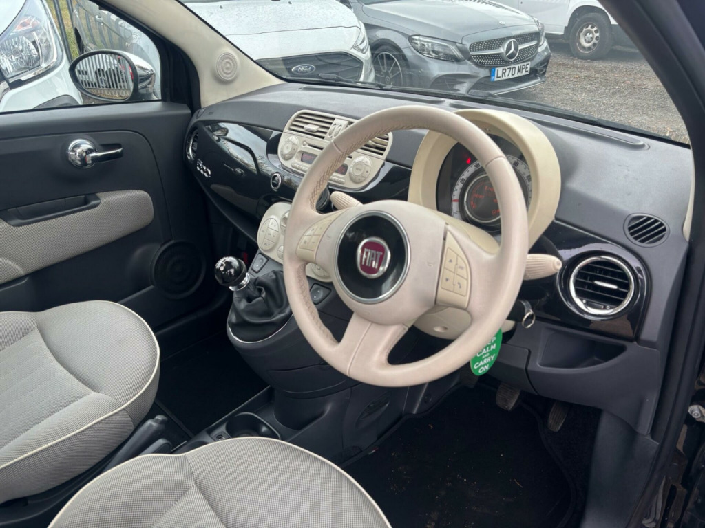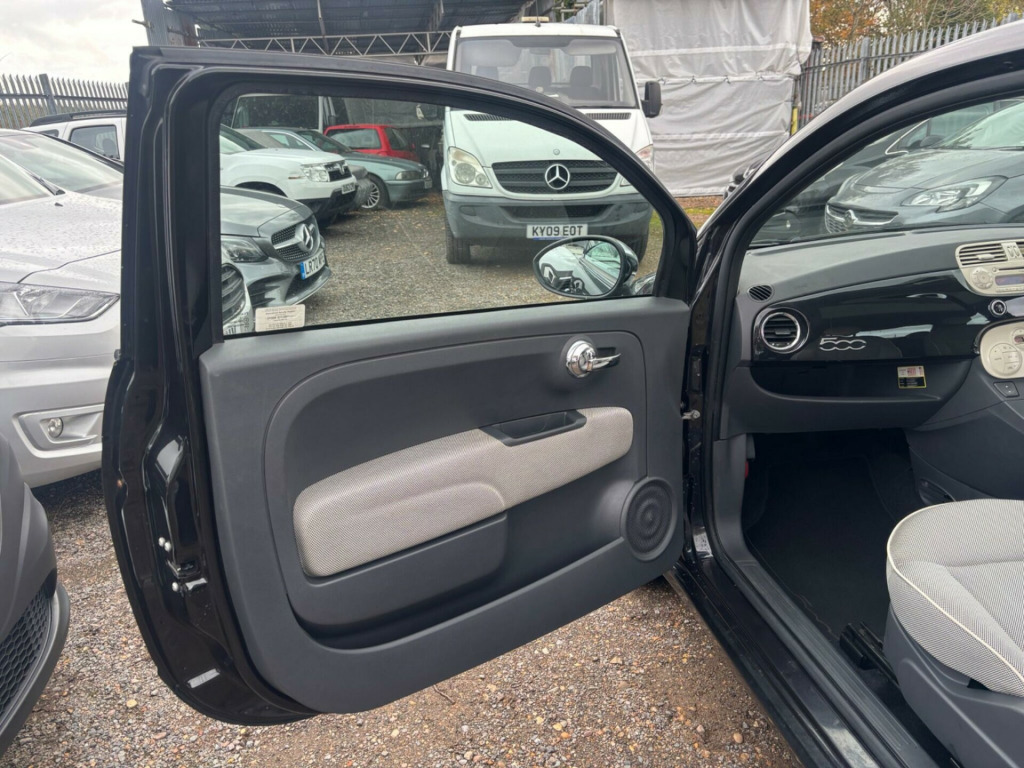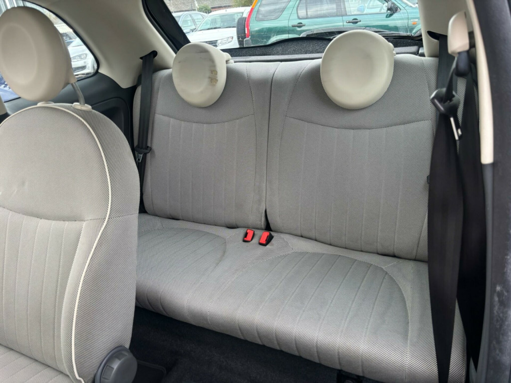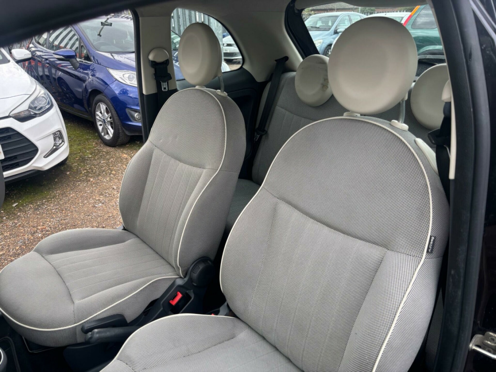 imate control - automatic dual zone, rear parking sensors, auto climate control, rear parking sensor, 16in alloy wheels, fog lights, front foglights, body coloured side rubbing strips with 500 logo, body colour side rubbing strips with 500 logo, door mirrors - chrome finish, blue&me - predisposition for tomtom, 15in alloy wheels, abs - anti-lock braking system, air conditioning, airbags - driver, airbags - front side, airbags - passenger, black ambience, blue&me - hands free system with usb port, body colour door mirrors, chrome kit, drivers knee airbag, ebd - electronic brakeforce distribution, electric front windows, electrically adjustable heated door mirrors, fixed glass roof with sunblind, fixed glass sunroof with sunblind, isofix child seat attachments, ivory ambience, lounge interior trim, power steering - dualdrive electric, radio-cd and mp3 player, remote central locking, space saver spare wheel, split folding 50:50 rear seat, steering wheel - height adjustment, steering wheel - leather with audio controls, window airbags