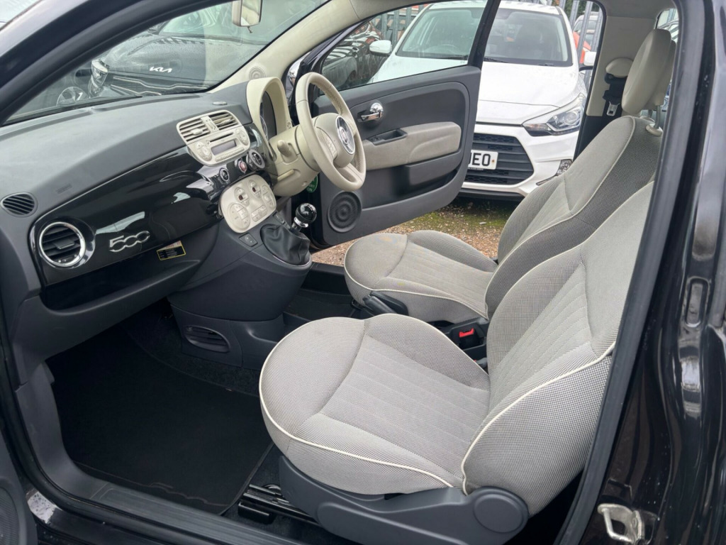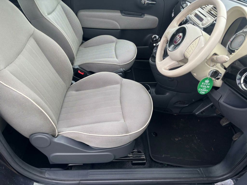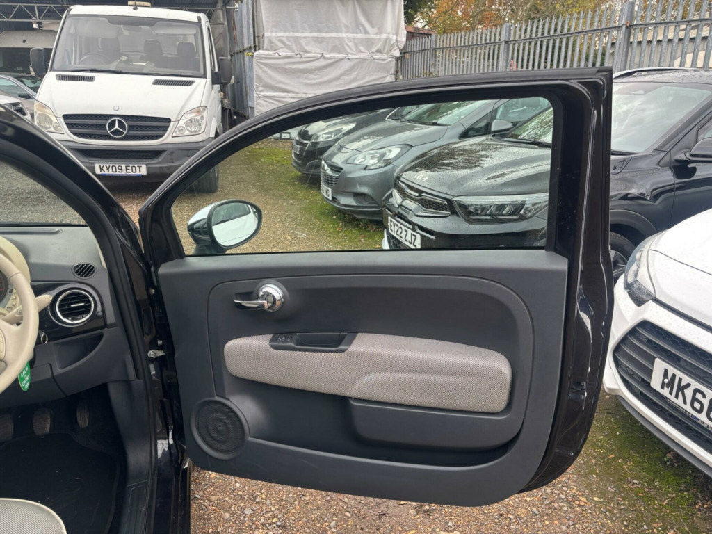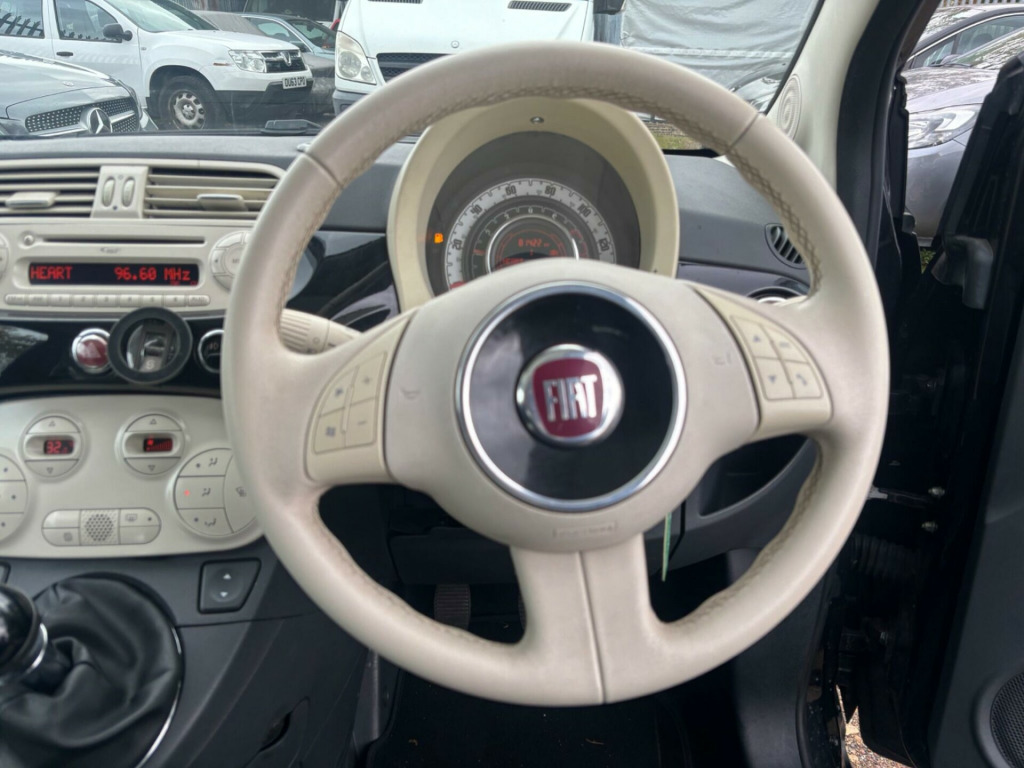imate control - automatic dual zone, rear parking sensors, auto climate control, rear parking sensor, 16in alloy wheels, fog lights, front foglights, body coloured side rubbing strips with 500 logo, body colour side rubbing strips with 500 logo, door mirrors - chrome finish, blue&me - predisposition for tomtom, 15in alloy wheels, abs - anti-lock braking system, air conditioning, airbags - driver, airbags - front side, airbags - passenger, black ambience, blue&me - hands free system with usb port, body colour door mirrors, chrome kit, drivers knee airbag, ebd - electronic brakeforce distribution, electric front windows, electrically adjustable heated door mirrors, fixed glass roof with sunblind, fixed glass sunroof with sunblind, isofix child seat attachments, ivory ambience, lounge interior trim, power steering - dualdrive electric, radio-cd and mp3 player, remote central locking, space saver spare wheel, split folding 50:50 rear seat, steering wheel - height adjustment, steering wheel - leather with audio controls, window airbags