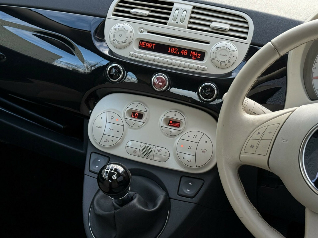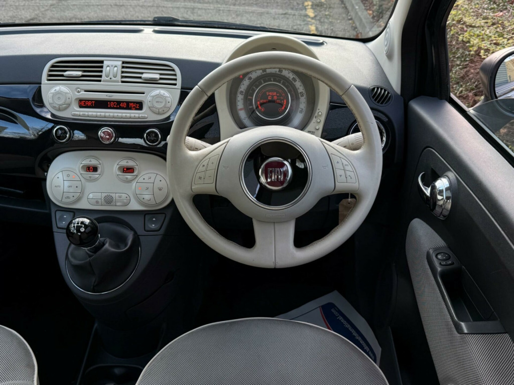 This 2012 Fiat 500 Lounge is a truly exceptional find, boasting an incredibly low mileage of just 54,000 miles for its age and having had only two owners. This particular example comes with a full service history, ensuring it has been well cared for throughout its life. The Lounge trim level offers a refined experience, enhanced by features such as automatic climate control, front fog lights, and a choice of stylish interior finishes with either red leather and ivory ambience or black leather with black ambience. It also includes Blue&Me predisposition for TomTom, adding a touch of modern convenience.This Fiat 500 is a standout choice, particularly when considering its impressive fuel economy of 71 mpg, which is significantly better than many other vehicles in its class. Coupled with its low CO2 emissions, this makes it an economical and environmentally conscious option. Furthermore, the vehicle will be provided with a full 12 months MOT on purchase, offering peace of mind for its next owner.. 15in Alloy Wheels, ABS - Anti-Lock Braking System, Air Conditioning, Airbags - Driver, Airbags - Front Side, Airbags - Passenger, Black ambience, Blue&Me - Hands Free System with USB Port, Body colour door mirrors, Chrome Kit, Drivers Knee Airbag, EBD - Electronic Brakeforce Distribution, Electric Front Windows, Electrically Adjustable Heated Door Mirrors, Fixed Glass Roof with Sunblind, Fixed Glass Sunroof with sunblind, ISOFIX Child Seat Attachments, Ivory ambience, Lounge Interior Trim, Power Steering - Dualdrive Electric, Radio-CD and MP3 Player, Remote Central Locking, Space Saver Spare Wheel, Split Folding 50:50 Rear Seat, Steering Wheel - Height Adjustment, Steering Wheel - Leather with Audio Controls, Window Airbags, Cloth - Black Chequered with Ivory Ambience, Blue&Me - Predisposition for TomTom, Front FogLights, Fog Lights, Auto Climate Control, Cloth- Pop- Red with Ivory ambience, Leather - Red with Ivory Ambience, Leather - Black with Black Ambience. Full service history