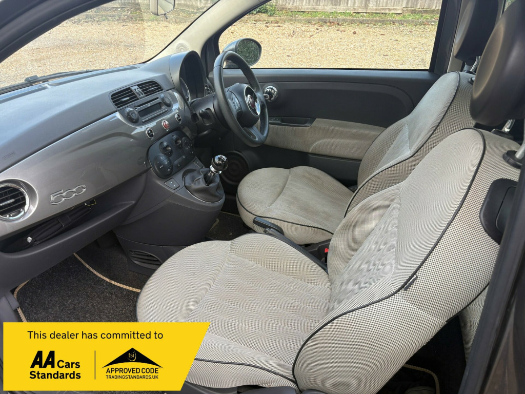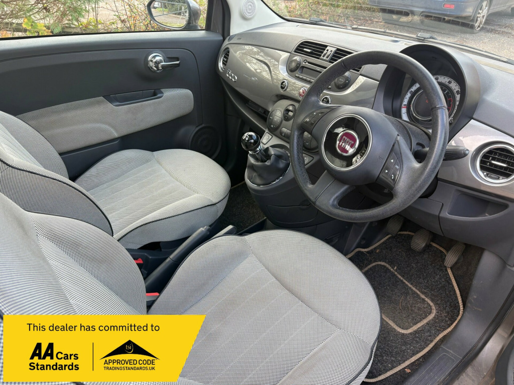 JUST TAKEN IN PART EXCHANGE THIS LOVELY CONDITION AND VERY WELL LOOKED AFTER LITTLE 2011/61 FIAT 500 0.9 TWIN AIR LOUNGE FINISHED IN METALLIC GREY WITH A REALLY NICE LIGHT GREY CLOTH INTERIOR , WITH A BELOW AVERAGE MILEAGE FOR ITS YEAR OF 105,000 MILES WITH A FULL SERVICE HISTORY ,BEING A LOUNGE MODEL IT HAS A GREAT SPEC INCLUDING AIR CON AND PAN GLASS ROOF , ALLOYS AND LOTS MORE , LAST OWNER HAD MANY YEARS AND AS I SAID IN LOVELY CONDITION INDEED JUST NEEDS A VALET OF WHICH WILL BE DONE ALONG WITH A NEW MOT....PART EXCHANGE CLEARANCE CAR ..BEAT THE EXMAS RUSH GREAT LITTLE RUNAROUND OR FIRST CAR GUYS AND FIRST TO SEE WILL DEFINATELY BUY FOR SURE.RAN CARS AND COMMERCIALS LIMITED in alloy wheels, body colour door mirrors, chrome kit, electric front windows, electrically adjustable heated door mirrors, fixed glass roof with sunblind, fixed glass sunroof with sunblind, space saver spare wheel, abs - anti-lock braking system, airbags - driver, airbags - front side, airbags - passenger, drivers knee airbag, ebd - electronic brakeforce distribution, isofix child seat attachments, remote central locking, window airbags, air conditioning, black ambience, ivory ambience, lounge interior trim, split folding 50:50 rear seat, steering wheel - height adjustment, steering wheel - leather with audio controls, blue&me - hands free system with usb port, radio-cd and mp3 player, power steering - dualdrive electric