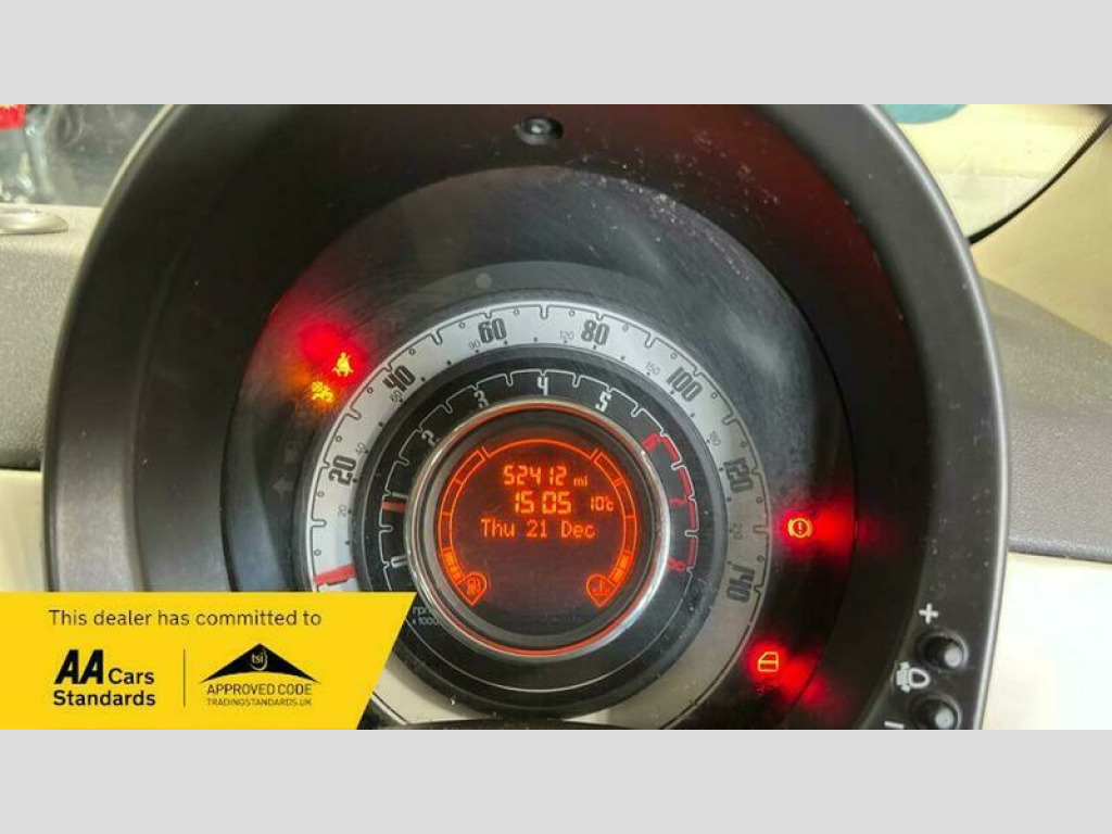 FIAT 500 0.9 TWINAIR LOUNGE Hatchback DVSA MILEAGE-9k (08/05/2014), 11k (11/05/2015), 13k (27/04/2016), 16k (02/05/2017), 19k (17/04/2018), 22k (10/04/2019), 24k (19/08/2020), 24k (30/03/2021), 30k (14/03/2022), 38k (31/03/2023), 44k (26/03/2024), 50k (03/04/2025). Parking Sensor(s) Air Conditioning Temporary Spare Wheel Alloy Wheels Panoramic Roof 15in Alloy Wheels, ABS, Air Conditioning, Brake Assist, Central Locking, Electric Windows, Front Airbags, Side Impact Airbags, Spare Wheel