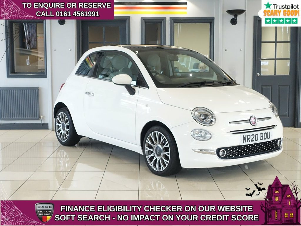 FINISHED IN A STUNNING BOSSA NOVA WHITE, COMPLEMENTED WITH 2 TONE BLACK/WHITE PART LEATHER SEATS + TOP SPECIFICATION CLUB LOUNGE FIAT 500 IN LOVELY CONDITION THROUGHOUT - COMES WITH A FULL SERVICE HISTORY + PANORAMIC GLASS SUNROOF + SATELLITE NAVIGATION + APPLE CARPLAY / ANDROID AUTO + APPS CONTROL + BLUETOOTH CONNECTIVITY + DAB DIGITAL RADIO + CRUISE CONTROL + PARKING SENSORS + IN CAR ENTERTAINMENTM WITH TOUCH SCREEN MEDIA DISPLAY + LED DAY TIME RUNNING LIGHTS + ECO STOP START SYSTEM + HILL HOLD START ASSIST + LEATHER MULTI FUNCTIONAL STEERING WHEEL + VOICE COMMAND + AIR CONDITIONING + ELECTRIC WINDOWS + ELECTRIC HEATED DOOR MIRRORS + 16 INCH ALLOY WHEELS + 50/50 FOLDING REAR SEATS.... ***NOT SURE YOU'RE ELIGIBLE FOR CAR FINANCE? CHECK TODAY USING THE FREE CAR FINANCE CHECKER ON OUR WEBSITE.*** Dace Motor Group have a dedicated team of finance experts waiting to help with your enquiry. Over the past 30 years we have forged relationships with the countrys largest and best finance houses. We are specialists in Hire Purchase (HP), Personal Contract Purchase (PCP) as well as assisting those with poor credit or previous credit problems. ------------ABOUT US------------ At Dace Specialist Car Centre Stockport, we are very proud to have been named the first Trading Standards Approved Car Retailer, with process and procedures developed with and applauded by them. We do recommend that customers RESERVE their choice of vehicle prior to making their trip to avoid potentially miss 16in Alloy Wheels, 50-50 Split Folding Rear Seat with Heigh, 7 Airbags, 7in HD Touchscreen Radio with 3D Navigat, 7in TFT Instrument Cluster, ABS with EBD, Apple CarPlay - Android Auto Connectivit, Automatic Climate Control, Automatic Door Locking, Avantgarde Bordeaux, Bi-Xenon Headlights, Body Coloured Bumpers, Body Coloured Side Rubbing Strips with 5, Bossa Nova White, Chrome Finished Door Mirror Covers, Chrome Kit, Chrome Plated Exterior Door Handles, Chrome Trim on Bonnet, Crossover Black, Cruise Control, Dark Tinted Rear Windows, Electric Front Windows, Electric Sunroof, Electrically Adjustable Painted Door Mir, Electrochromatic Rear View Mirror, Electroclash Grey, Epic Blue, ESC - Elec