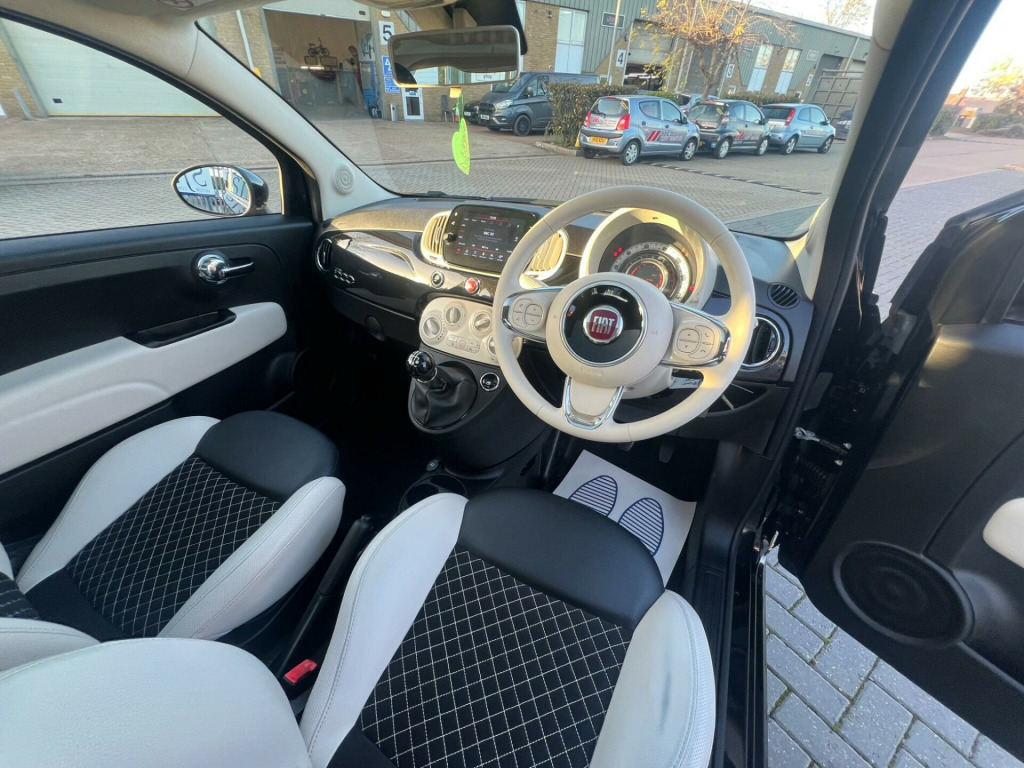 Here at SJS Motor Company, we now offer 12 MONTHS NATIONWIDE WARRANTY with every vehicle sold! This helps us to provide the best quality used vehicles possible, along with the top level of aftercare that you deserve! Every one of our vehicles is prepared to the best of our ability, before it goes on sale. This includes a full on site valet by our in house valeter, as well as any work required on the vehicle to ensure it meets our high standards. All alloy wheels will also be fully refurbished where required.All our vehicles come with service history, and represent excellent value for money as we are constantly checking the price of our vehicles to ensure they are amongst the best value in the market, compared to others of similar age, mileage and specification.When you come to view one of our vehicles, we will ensure you are given the chance to view at your own pace, without any pushy sales tactics. We will be happy to demonstrate anything in the car you would like to see, and once you are happy with the vehicle and what you have seen, we can take it on a test drive to ensure you're happy before your purchase.We will ensure every vehicle purchased comes with a minimum of 6 months MOT as well as our brand new 12 Month Nationwide Warranty. Once the car has received its MOT and Pre-Delivery Inspection, it will be fully re-cleaned to ensure that your new vehicle is as perfect as possible.With our in house Nationwide Warranty, we are able to offer up to a 3 year warranty with our vehicles, at extremely competitive prices, and can offer finance for all situations and great prices.We look forward to seeing you soon, to purchase your new vehicle from SJS Motor Company! bric - black-ivory with ivory ambience, 16in alloy wheels - white finish, 50-50 split folding rear seat with height adjustable head restraints, 7 airbags, 7in hd touchscreen radio with 3d navigation - bluetooth - usb and dab, 7in tft instrument cluster, abs with ebd, apple carplay - android auto connectivity, automatic climate control, automatic door locking, body coloured bumpers, body coloured side rubbing strips with 500 logo, chrome finished door mirror covers, chrome kit, chrome plated exterior door handles, chrome trim on bonnet, cruise control, esc - electronic stability control, electric front windows, electrically adjustable painted door mirrors with defrosting and external temperature sensor, fix and go puncture repair kit, fixed glass roof with sunblind, fog lights, front seats with memory function, height adjustable drivers seat, hybrid badge on tailgate, led daytime running lights, leather gear knob, rack and pinion with electric power steering, rear parking sensors, remote central locking, speed limiter, steering wheel - height adjustment, tpms - tyre pressure monitoring system, technoleather steering wheel with audio controls, unique all around liner - red-white-red, unique floor mats with white boarders, unique wooden dashboard