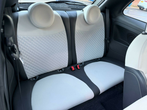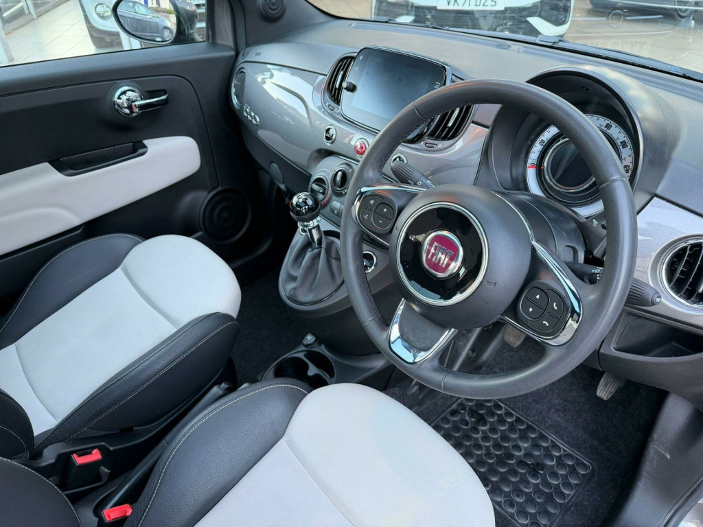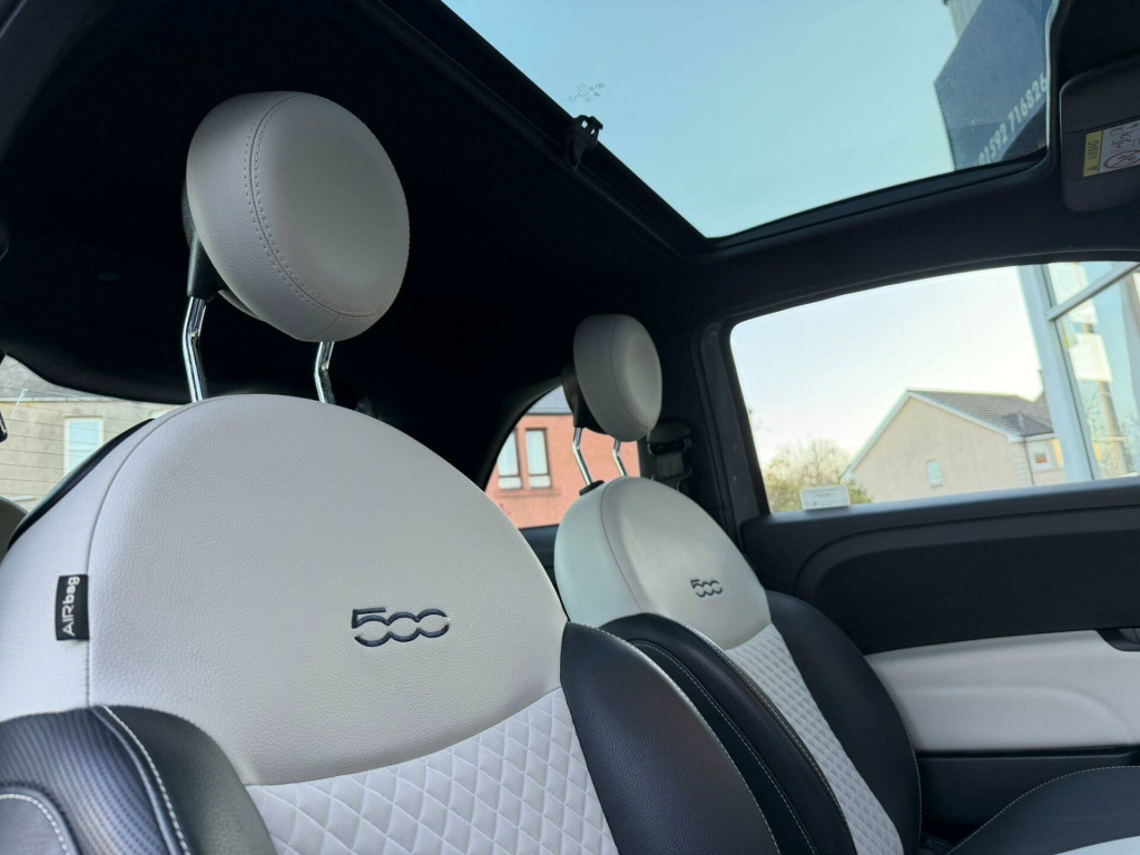 Discover this stylish 2023 Fiat 500 Dolcevita, a compact car designed for urban adventures. This Euro 6 compliant model boasts a fuel efficient 1.0 litre petrol engine, offering an impressive highlight of 61 miles per gallon. Inside, you'll find a 7 inch HD touchscreen radio complete with Bluetooth, USB, and DAB functionality, alongside seamless Apple CarPlay and Android Auto connectivity for your smartphone. The car also features convenient rain and dusk sensors that automatically activate the headlights, and rear parking sensors to assist with manoeuvring.This Fiat 500 Dolcevita is also notable for its low insurance group rating, making it an economical choice for many drivers. Its low CO2 emissions further contribute to its cost effectiveness and environmental consideration. Enjoy the light and airy cabin, enhanced by a fixed sunroof that includes a panoramic glass panel, creating a more open and pleasant driving experience.. 15in Alloy Wheels, 50-50 Split Folding Rear Seat with Height Adjustable Head Restraints, 7 Airbags, 7in HD Touchscreen Radio with Bluetooth - USB and DAB, ABS with EBD, Air Conditioning, Apple CarPlay - Android Auto Connectivity, Automatic Door Locking, Body Coloured Bumpers, Body Coloured Dashboard, Chrome Kit, Chrome Plated Exterior Door Handles, Cruise Control, Dolcevita Badge, ESC - Electronic Stability Control, Electric Front Windows, Electrically Adjustable and Heated Body Coloured Door Mirrors, Fix and Go Puncture Repair Kit, Fixed Sunroof, Fog Lights, Height Adjustable Drivers Seat, LED Daytime Running Lights, Rack and Pinion with Electric Power Steering, Rain and Dusk Sensors, Rear Parking Sensors, Remote Central Locking, Speed Limiter, Steering Wheel - Height Adjustment, TPMS - Tyre Pressure Monitoring System, Technoleather Steering Wheel with Audio Controls, Fabric - White-Black with Black Ambience.