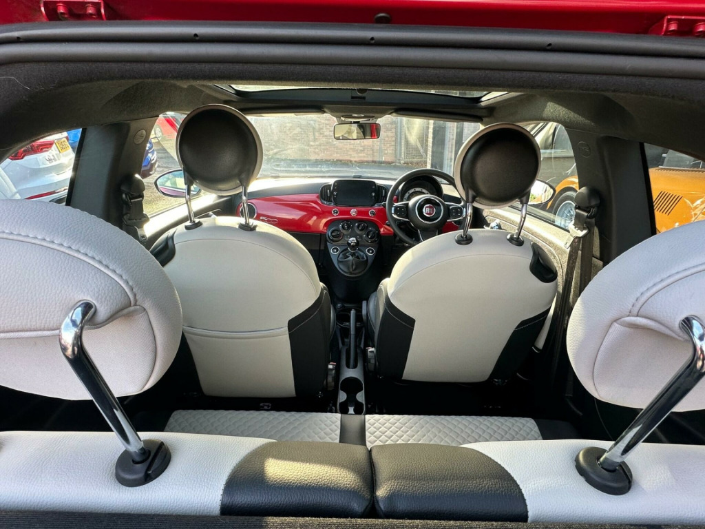 This 2022 Fiat 500 Dolcevita is a standout choice, having been owned by just one person and covered only 18,000 miles. This stylish city car is powered by an efficient 1.0 litre petrol engine, meeting Euro 6 emission standards. It comes equipped with a fixed sunroof for an airy feel, automatic headlights that activate with rain and dusk sensors, and a 7 inch HD touchscreen radio complete with Bluetooth connectivity for calls and music, USB port, and DAB digital radio. Comfort is assured with air conditioning, and parking is made simpler with rear parking sensors.The Fiat 500 Dolcevita offers several advantages that set it apart. Its impressive fuel economy of 61 miles per gallon means fewer trips to the petrol station, and its low CO2 emissions are better for the environment. Furthermore, its low insurance group rating indicates that running costs will be kept to a minimum, making this a sensible and economical choice for everyday driving.. 15in Alloy Wheels, 50-50 Split Folding Rear Seat with Height Adjustable Head Restraints, 7 Airbags, 7in HD Touchscreen Radio with Bluetooth - USB and DAB, ABS with EBD, Air Conditioning, Apple CarPlay - Android Auto Connectivity, Automatic Door Locking, Body Coloured Bumpers, Body Coloured Dashboard, Chrome Kit, Chrome Plated Exterior Door Handles, Cruise Control, Dolcevita Badge, ESC - Electronic Stability Control, Electric Front Windows, Electrically Adjustable and Heated Body Coloured Door Mirrors, Fix and Go Puncture Repair Kit, Fixed Sunroof, Fog Lights, Height Adjustable Drivers Seat, LED Daytime Running Lights, Rack and Pinion with Electric Power Steering, Rain and Dusk Sensors, Rear Parking Sensors, Remote Central Locking, Speed Limiter, Steering Wheel - Height Adjustment, TPMS - Tyre Pressure Monitoring System, Technoleather Steering Wheel with Audio Controls, Fabric - White-Black with Black Ambience. Full service history