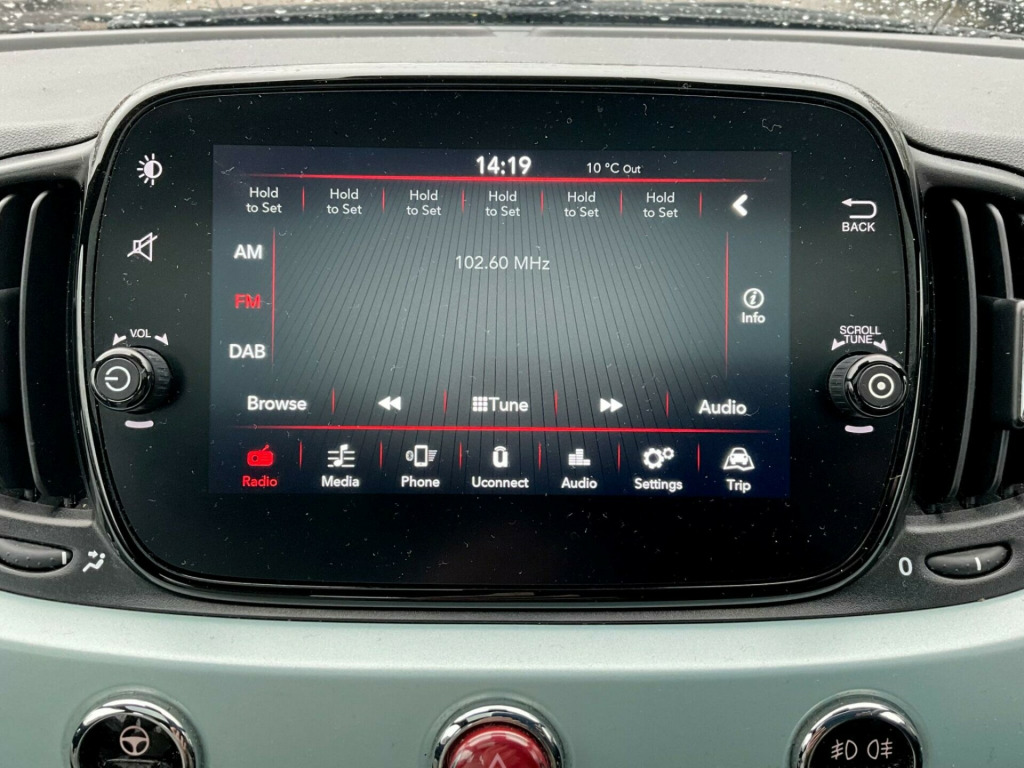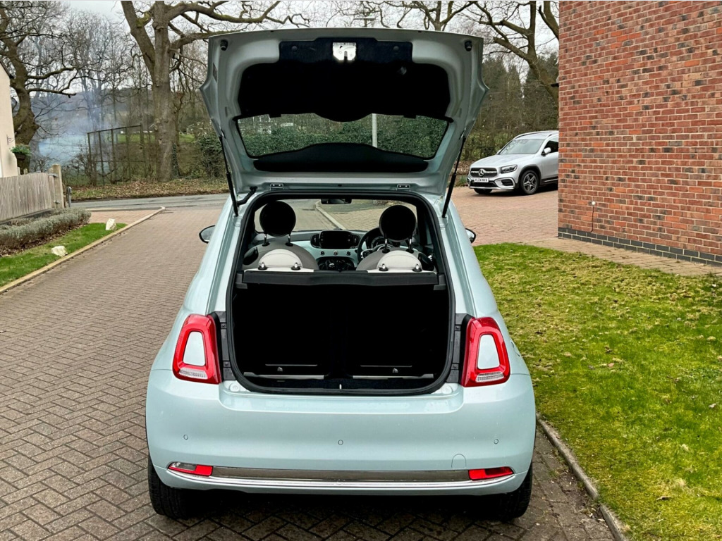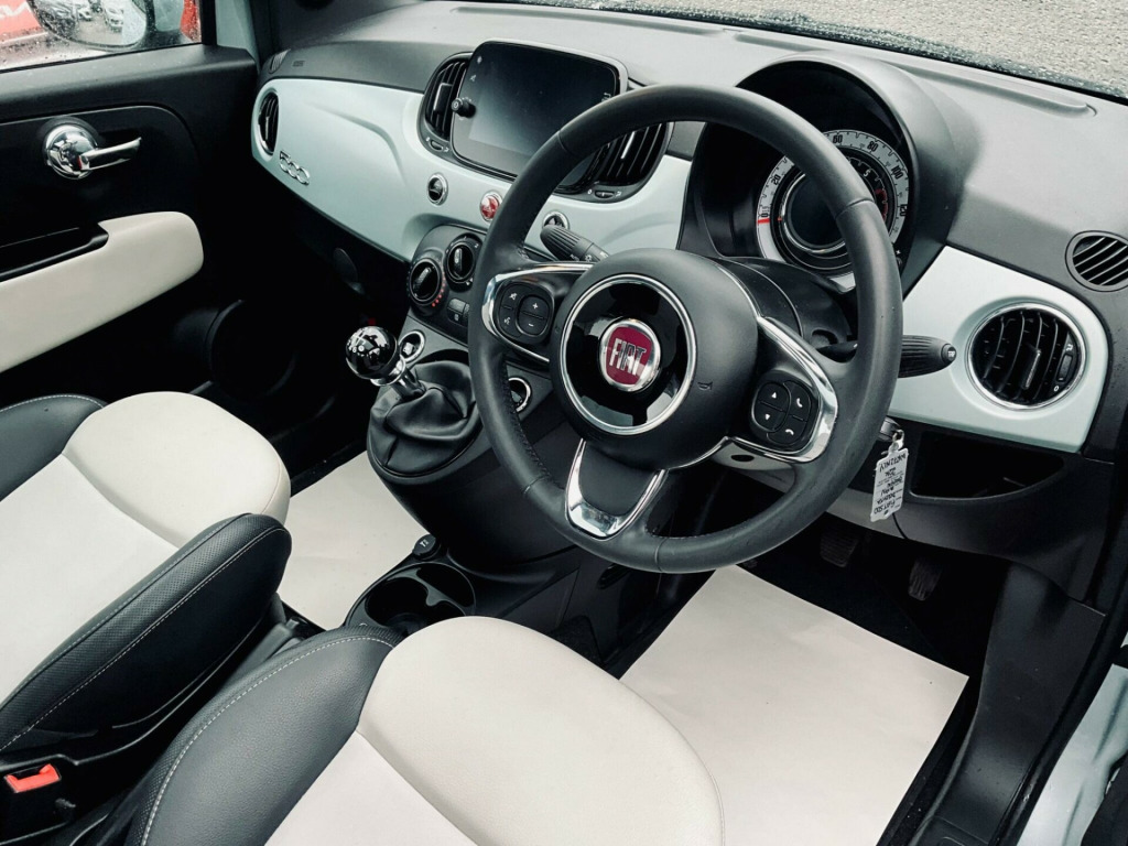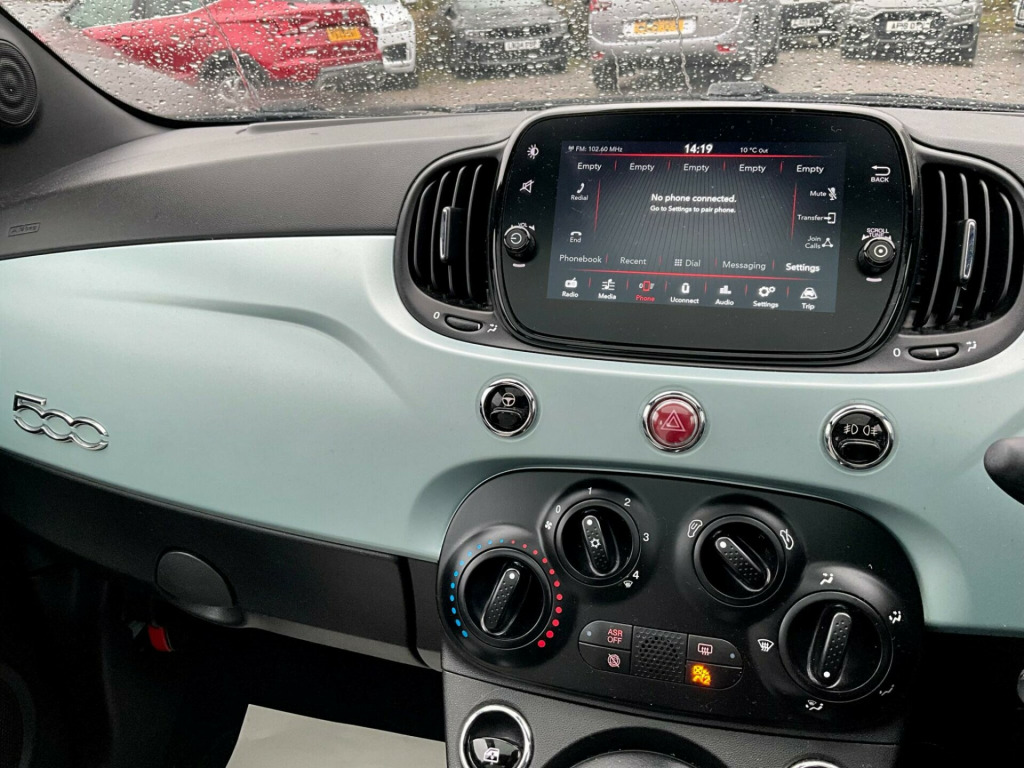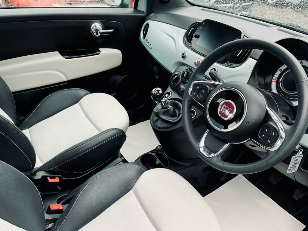 Discover this stylish 2022 Fiat 500 Dolcevita, a car that offers both charm and practicality. This particular model boasts a fuel efficient 1.0 litre petrol engine, meeting Euro 6 emission standards. Inside, you'll find a 7 inch HD touchscreen radio complete with Bluetooth, USB, and DAB functionality, alongside seamless Apple CarPlay and Android Auto connectivity. Comfort is assured with air conditioning, while the rain and dusk sensors automatically manage the headlights for you. Enjoy the open air with the fixed panoramic sunroof, adding a touch of luxury to every journey.This Fiat 500 Dolcevita is designed to be economical to run, achieving an impressive 61 miles per gallon, which indicates it is more efficient than many similar vehicles. Furthermore, its low CO2 emissions and low insurance group highlight its cost effectiveness, making it an attractive choice for many drivers. This combination of style, technology, and efficiency makes the Fiat 500 Dolcevita a compelling option.. 15in Alloy Wheels, 50-50 Split Folding Rear Seat with Height Adjustable Head Restraints, 7 Airbags, 7in HD Touchscreen Radio with Bluetooth - USB and DAB, ABS with EBD, Air Conditioning, Apple CarPlay - Android Auto Connectivity, Automatic Door Locking, Body Coloured Bumpers, Body Coloured Dashboard, Chrome Kit, Chrome Plated Exterior Door Handles, Cruise Control, Dolcevita Badge, ESC - Electronic Stability Control, Electric Front Windows, Electrically Adjustable and Heated Body Coloured Door Mirrors, Fix and Go Puncture Repair Kit, Fixed Sunroof, Fog Lights, Height Adjustable Drivers Seat, LED Daytime Running Lights, Rack and Pinion with Electric Power Steering, Rain and Dusk Sensors, Rear Parking Sensors, Remote Central Locking, Speed Limiter, Steering Wheel - Height Adjustment, TPMS - Tyre Pressure Monitoring System, Technoleather Steering Wheel with Audio Controls, Fabric - White-Black with Black Ambience.