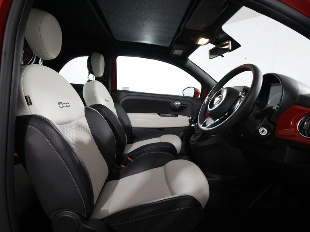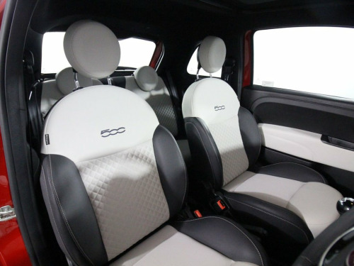 Service history with 2 services. Last serviced at 11,695 miles in November 2024. This 2022 Fiat 500 1.0 MHEV Dolcevita is a stylish and efficient compact city car, finished in striking Pasodoble Red with distinctive Dolcevita badging. It features 15-inch alloy wheels, a fixed sunroof, and signature LED daytime running lights complemented by chrome-plated exterior door handles and front fog lights, elevating its premium appeal. The exterior design balances classic Fiat charm with contemporary touches for standout urban driving. Inside, the cabin offers a bright and comfortable environment highlighted by white-black fabric upholstery with black ambience details and a height-adjustable driver's seat. The driver benefits from a technoleather steering wheel fitted with audio controls for ease of use, while connectivity is well catered for by a 7-inch HD touchscreen radio supporting Apple CarPlay, Android Auto, Bluetooth, USB, and DAB digital radio. Practical features include electric front windows and electrically adjustable, heated body-coloured door mirrors. Safety and convenience are priority features with seven airbags, ABS with electronic brakeforce distribution, electronic stability control, and a speed limiter to help maintain control. Rear parking sensors assist in tight city spaces, while rain and dusk sensors automatically adapt lighting and wiper functions as needed. The car also comes with remote central locking, tyre pressure monitoring, and a Fix and Go punctu 15in Alloy Wheels, 50-50 Split Folding Rear Seat with Heigh, 7 Airbags, 7in HD Touchscreen Radio with Bluetooth , ABS with EBD, Air Conditioning, Apple CarPlay - Android Auto Connectivit, Automatic Door Locking, Body Coloured Bumpers, Body Coloured Dashboard, Chrome Kit, Chrome Plated Exterior Door Handles, Cruise Control, Dolcevita Badge, Electric Front Windows, Electrically Adjustable and Heated Body , ESC - Electronic Stability Control, Fabric - White-Black with Black Ambience, Fix and Go Puncture Repair Kit, Fixed Sunroof, Fog Lights, Height Adjustable Drivers Seat, LED Daytime Running Lights, Pasodoble Red, Rack and Pinion with Electric Power Stee, Rain and Dusk Sensors, Rear Parking Se