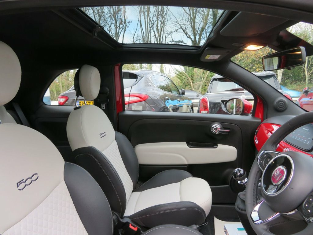 Welcome to Bunny Motors, your Fiat 500 Specialist with a twist, helping charities whilst supplying the nation with one of our favourite ever cars, the Fiat 500, and here's why we love them so much... This iconic motor has won over 40 major awards, and is one of the most attractive retro-styled vehicles on the road. Inexpensive to run and fun to drive. It has seven airbags, a tough shell and a lot of safety features. Just as comfortable to drive on the motorway as zipping around town. Most of our customers name their Fiat 500, as it is a car with soul, unlike a lot of other other city cars. This particular model is a 2022 (72 plate) Fiat 500 1.0 MHEV (Mild Hybrid) Dolcevita 3 Door Hatchback finished in the classic Pasodoble Red. Notable features of the Dolcevita including; 7" HD Touchscreen with Apple CarPlay / Android Auto & DAB Radio, Automatic Headlights, Automatic Wipers, Fixed Panoramic Sunroof, 15" Alloy Wheels, Rear Parking Sensors, Cruise Control with Speed Limiter, Bluetooth/Telephone with Voice Control, Air-Conditioning, Start/Stop Engine, USB Connection x 2, LED Daytime Running Lights, Diamond Grill, Front Fog Lights, Chrome Exhaust, Electric Windows + Mirrors, Spare Key. This low mileage example comes with full service history plus a detailed inspection and new service on arrival to us. One Previous Owner. MOT until November 2026 (no advisories). Only Insurance Group 9! Low Rate Finance Available. HPI Clear. Lyons Farm Cars & Bunn Fabric - White-Black with Black Ambience, Pasodoble Red, 15in Alloy Wheels, 50-50 Split Folding Rear Seat with Heigh, 7 Airbags, 7in HD Touchscreen Radio with Bluetooth , ABS with EBD, Air Conditioning, Apple CarPlay - Android Auto Connectivit, Automatic Door Locking, Body Coloured Bumpers, Body Coloured Dashboard, Chrome Kit, Chrome Plated Exterior Door Handles, Cruise Control, Dolcevita Badge, Electric Front Windows, Electrically Adjustable and Heated Body , ESC - Electronic Stability Control, Fix and Go Puncture Repair Kit, Fixed Sunroof, Fog Lights, Height Adjustable Drivers Seat, LED Daytime Running Lights, Rack and Pinion with Electric Power Stee, Rain and Dusk Sensors, Rear Parking Se