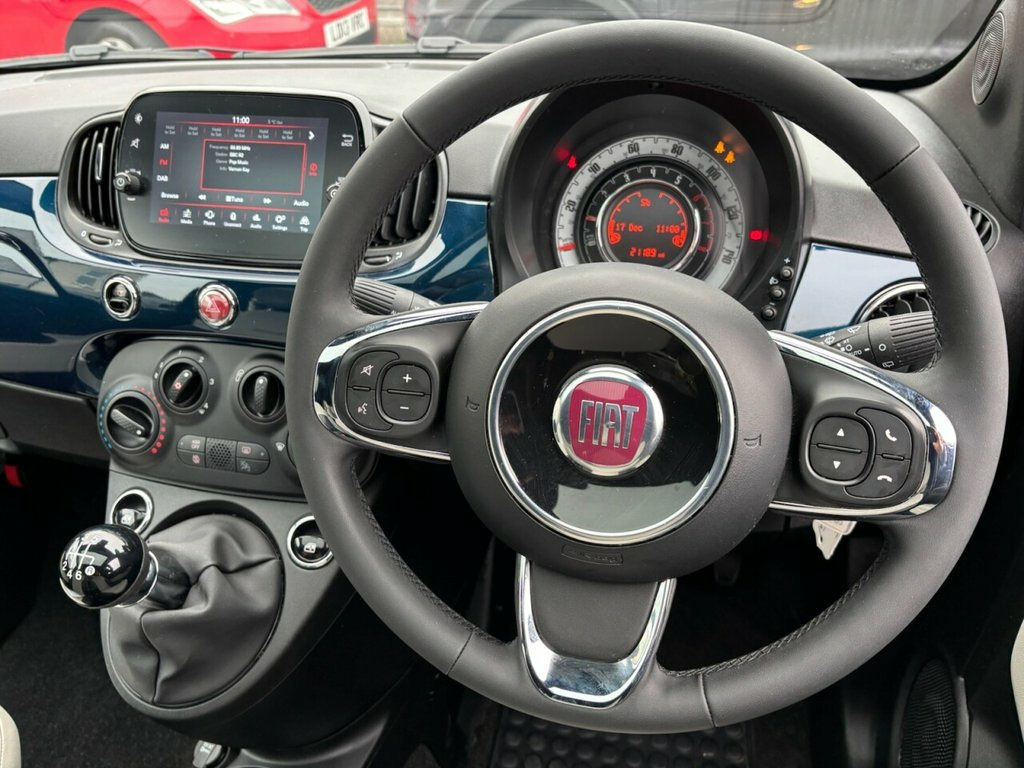 1 OWNER FULL SERVICE HISTORY LAST SERVICED 16TH DECEMBER 2025 AT 21,188 MILES, EPIC BLUE METALLIC, APPLE CARPLAY, BLACK AND CREAM PART LEATHER, AIR CONDITIONING, LEATHER MULTI FUNCTION STEERING WHEEL, CRUISE CONTROL, ALLOY WHEELS, PARK DISTANCE SENSORS, REMOTE DAB MEDIA WITH USB, BLUETOOTH PHONE CONNECTION, ASR TRACTION CONTROL, A.B.S., ELECTRIC WINDOWS, ELECTRIC MIRRORS, REMOTE CENTRAL LOCKING ALARM, HPI CLEAR, FRONT FOGS, TWIN FRONT PLUS SIDE AIRBAGS 15in Alloy Wheels, 50-50 Split Folding Rear Seat with Heigh, 7 Airbags, 7in HD Touchscreen Radio with Bluetooth , ABS with EBD, Air Conditioning, Apple CarPlay - Android Auto Connectivit, Automatic Door Locking, Body Coloured Bumpers, Body Coloured Dashboard, Chrome Kit, Chrome Plated Exterior Door Handles, Cruise Control, Dolcevita Badge, Electric Front Windows, Electrically Adjustable and Heated Body , Epic Blue, ESC - Electronic Stability Control, Fabric - White-Black with Black Ambience, Fix and Go Puncture Repair Kit, Fixed Sunroof, Fog Lights, Height Adjustable Drivers Seat, LED Daytime Running Lights, Rack and Pinion with Electric Power Stee, Rain and Dusk Sensors, Rear Parking Sensor