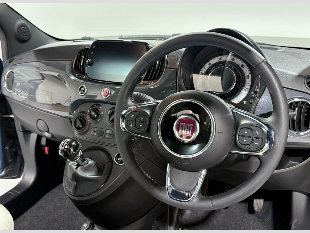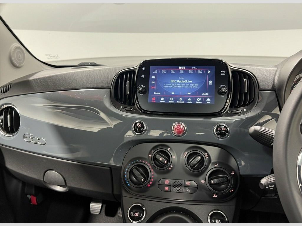 1 OWNER FROM NEW Serviced at the same Fiat dealership at 3912, 8293, 14769 and 19806 Miles PANORAMIC GLASS ROOF - AIR CONDITIONING - REAR PARK DISTANCE CONTROL - SPORTS INTERIOR - LOW INSURANCE GROUP - LED LIGHTS - ONLY 20000 MILES 15in Alloy Wheels, 50-50 Split Folding Rear Seat with Heigh, 7 Airbags, 7in HD Touchscreen Radio with Bluetooth , ABS with EBD, Air Conditioning, Apple CarPlay - Android Auto Connectivit, Automatic Door Locking, Body Coloured Bumpers, Body Coloured Dashboard, Chrome Kit, Chrome Plated Exterior Door Handles, Cruise Control, Dolcevita Badge, Electric Front Windows, Electrically Adjustable and Heated Body , ESC - Electronic Stability Control, Fabric - White-Black with Black Ambience, Fix and Go Puncture Repair Kit, Fixed Sunroof, Fog Lights, Height Adjustable Drivers Seat, LED Daytime Running Lights, Rack and Pinion with Electric Power Stee, Rain and Dusk Sensors, Rear Parking Sensors, Remote C
