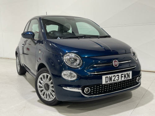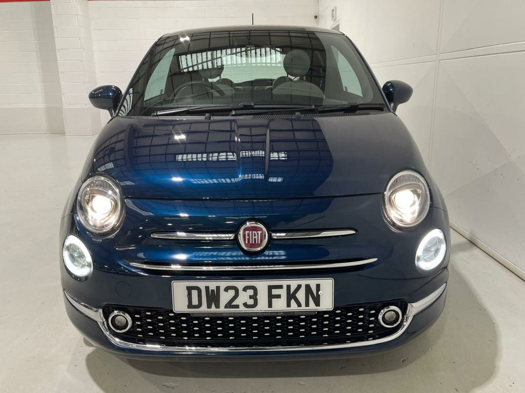 FINANCE & PART EXCHANGE AVAILABLE* - Only 1 registered keeper & 36,565 miles from new, FIAT MAIN DEALER SERVICE HISTORY, 2 KEYS, - this SUPERB SPECIFICATION FIAT 500 1.0 MHEV DOLCEVITA HATCHBACK is finished in stunning sports Epic Blue metallic & is complimented with contrasting 1/2 leather sports trim and extends itself to the following additional features - full glass panoramic sunroof, air conditioning, trip computer, cruise control with speed limiter, leather trimmed multi function steering wheel, rear park distance control, Bluetooth telephone prep, DAB digital radio, media input, Apple CarPlay, voice command, start / stop, auto headlights, rain sensor, power assisted steering, abs, airbags, electric mirrors, electric windows, remote central locking, head restraints, Fiat sports alloy wheels, Fiat anti theft system. ***FINANCE AVAILABLE - subject to status. T&C's apply.***PART EXCHANGE AVAILABLE***ALL VEHICLES ARE HPI & NATIONAL MILEAGE REGISTER CHECKED***THE AA WARRANTY IS SUBJECT TO TERMS & CONDITIONS AND DOES NOT COVER VEHICLES THAT ARE BEING USED FOR TAXI, PRIVATE HIRE, CHAUFFEURING PURPOSES OR FOR REWARD.***Please note, that the specifications/components/features etc. are generic to that vehicle of the type advertised but may not be included in the specific vehicle that is for sale. It is for the intended purchaser to satisfy themselves of the presence or absence of any specifications/components/features before sale. Please ask if you are uncertain of anything and we will see if we can assist.. 15in Alloy Wheels, 50-50 Split Folding Rear Seat with Height Adjustable Head Restraints, 7 Airbags, 7in HD Touchscreen Radio with Bluetooth - USB and DAB, ABS with EBD, Air Conditioning, Apple CarPlay - Android Auto Connectivity, Automatic Door Locking, Body Coloured Bumpers, Body Coloured Dashboard, Chrome Kit, Chrome Plated Exterior Door Handles, Cruise Control, Dolcevita Badge, ESC - Electronic Stability Control, Electric Front Windows, Electrically Adjustable and Heated Body Coloured Door Mirrors, Fix and Go Puncture Repair Kit, Fixed Sunroof, Fog Lights, Height Adjustable Drivers Seat, LED Daytime Running Lights, Rack and Pinion with Electric Power Steering, Rain and Dusk Sensors, Rear Parking Sensors, Remote Central Locking, Speed Limiter, Steering Wheel - Height Adjustment, TPMS - Tyre Pressure Monitoring System, Technoleather Steering Wheel with Audio Controls, Fabric - White-Black with Black Ambience.