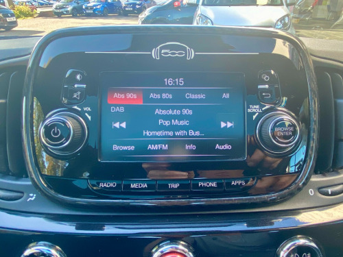 in alloy wheels, body coloured bumpers, chrome kit, chrome plated exterior door handles, dolcevita badge, electric front windows, electrically adjustable and heated body coloured door mirrors, fix and go puncture repair kit, fixed sunroof, 50-50 split folding rear seat with height adjustable head restraints, air conditioning, body coloured dashboard, height adjustable drivers seat, rain and dusk sensors, steering wheel - height adjustment, technoleather steering wheel with audio controls, 7 airbags, abs with ebd, automatic door locking, esc - electronic stability control, remote central locking, 7in hd touchscreen radio with bluetooth - usb and dab, apple carplay - android auto connectivity, cruise control, rack and pinion with electric power steering, speed limiter, tpms - tyre pressure monitoring system, fog lights, led daytime running lights