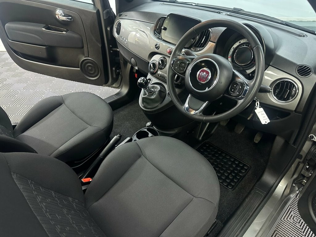 EU72XHT FIAT 500 1.0 MHEV Hatchback 3dr Petrol Manual Euro 6 (s/s) (70 bhp)- 42K miles- Full service history- The 500 boasts a spec of immaculate 15" alloy wheels, fixed glass roof with sunblind, multifunction steering wheel, air conditioning, Bluetooth, DAB/USB media, cruise control, city steer, apple car play, electric windows and remote central locking . it is extremely economical with Fiat fuel consumption figures showing 65.7mpg extra urban and 58.9mpg combined. Looks stunning in Electrolash grey and is superb value for money at this price. Whats App Part Ex Valuation Hotline! Send photo's and details to 07591835255 Electroclash Grey, Fabric - Black with Black Ambience