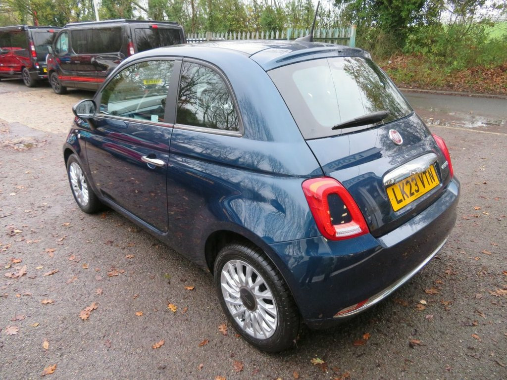 Welcome to Bunny Motors, your Fiat 500 Specialist with a twist, helping charities whilst supplying the nation with one of our favourite ever cars, the Fiat 500, and here's why we love them so much... This iconic motor has won over 40 major awards, and is one of the most attractive retro-styled vehicles on the road. Inexpensive to run and fun to drive. It has seven airbags, a tough shell and a lot of safety features. Just as comfortable to drive on the motorway as zipping around town. Most of our customers name their Fiat 500, as it is a car with soul, unlike a lot of other other city cars. This particular model is a 2023 Fiat 500 1.0 MHEV (Mild Hybrid) 3 Door Hatchback finished in the elegant Epic Blue Metallic. Notable features of this 500 include; 7" HD Touchscreen with Apple CarPlay / Android Auto & DAB Radio, Automatic Headlights, Automatic Wipers, Fixed Panoramic Sunroof, 15" Alloy Wheels, Cruise Control with Speed Limiter, Bluetooth/Telephone with Voice Control, Air-Conditioning, Start/Stop Engine, USB Connection x 2, LED Daytime Running Lights, Diamond Grill, Front Fog Lights, Chrome Exhaust, Electric Windows + Mirrors, Spare Key. This example comes perfectly maintained with full service history (4 x service records) including a detailed inspection and new service upon arrival to us. One Owner. Sold with a new 12 month MOT with no advisories. Only Insurance Group 9! Low Rate Finance Available. HPI Clear. Lyons Farm Cars & Bunny Motors 15in Alloy Wheels, 50-50 Split Folding Rear Seat with Heigh, 7 Airbags, 7in HD Touchscreen Radio with Bluetooth , ABS with EBD, Air Conditioning, Apple CarPlay - Android Auto Connectivit, Automatic Door Locking, Body Coloured Bumpers, Body Coloured Dashboard, Chrome Kit, Chrome Plated Exterior Door Handles, Cruise Control, Dolcevita Badge, Electric Front Windows, Electrically Adjustable and Heated Body , Epic Blue, ESC - Electronic Stability Control, Fabric - Black with Black Ambience, Fix and Go Puncture Repair Kit, Fixed Sunroof, Fog Lights, Height Adjustable Drivers Seat, LED Daytime Running Lights, Rack and Pinion with Electric Power Stee, Rain and Dusk Sensors, Remote Central Locking, S