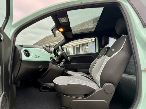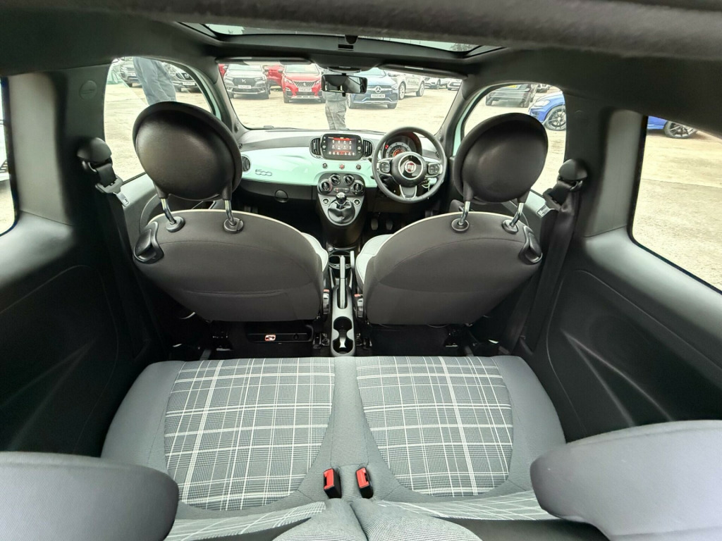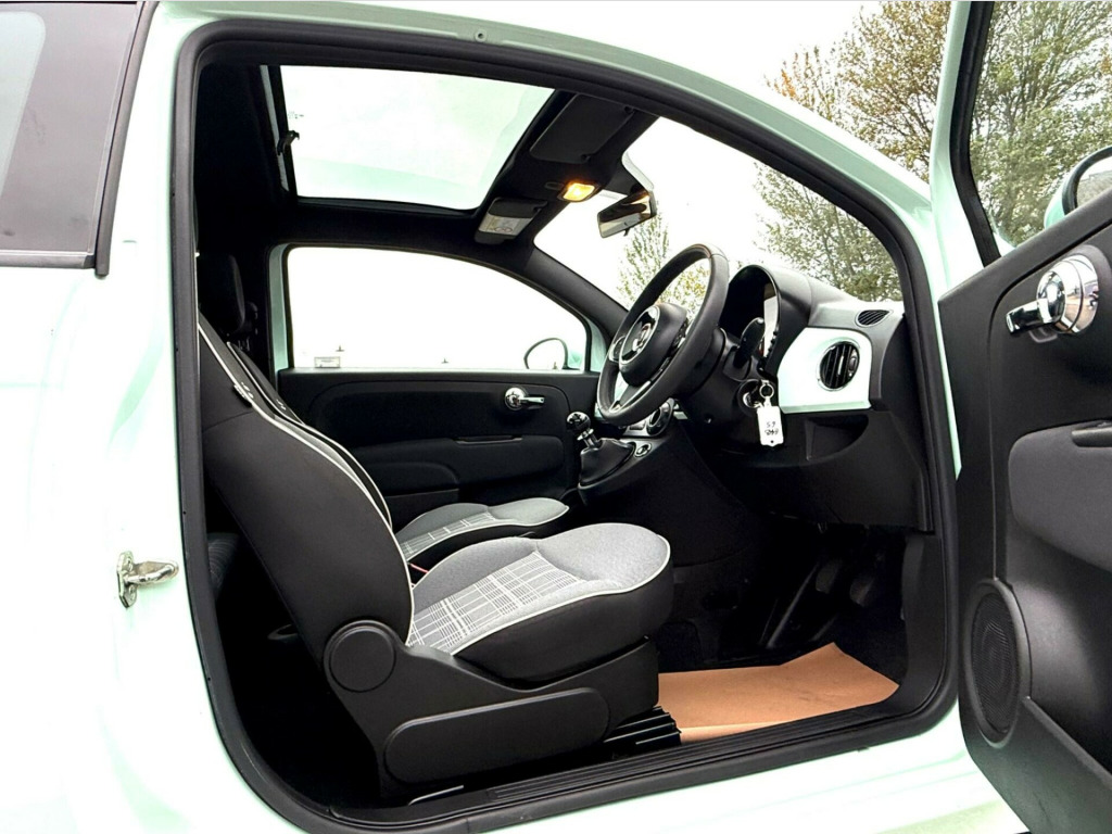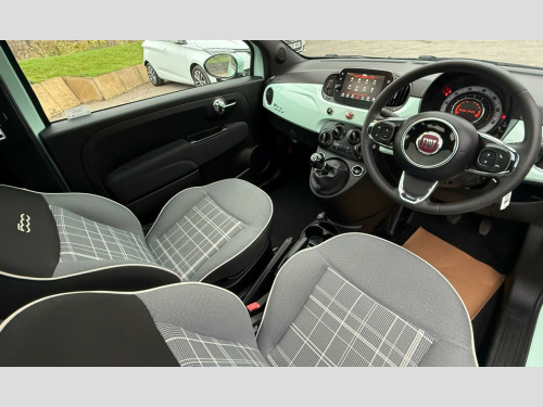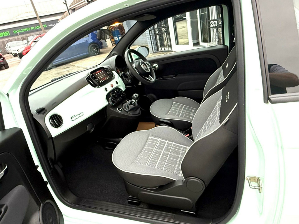 Discover this stylish 2021 Fiat 500 Lounge, a compact car designed for urban life. This Euro 6 compliant model features a fuel efficient 1.0L petrol engine, offering a remarkable 53 miles per gallon. Inside, you'll find comfortable front seats with a memory function, perfect for ensuring your ideal driving position is always ready. Enjoy a pleasant cabin environment with air conditioning, and a fixed glass roof with a sunblind that floods the interior with light. Stay connected and entertained with the 7in HD touchscreen radio, complete with Bluetooth, USB, and DAB capabilities, alongside seamless Apple CarPlay and Android Auto integration.This Fiat 500 Lounge stands out with its excellent running costs. Its low insurance group rating means more money in your pocket, while its low CO2 emissions are better for the environment. These highlights demonstrate how this particular Fiat 500 offers a more economical and considerate driving experience compared to many other vehicles in its class. in alloy wheels, 50-50 split folding rear seat with height adjustable head restraints, 7 airbags, 7in hd touchscreen radio with bluetooth - usb and dab, abs with ebd, air conditioning, apple carplay - android auto connectivity, automatic door locking, body coloured bumpers, chrome kit, chrome plated exterior door handles, cruise control, esc - electronic stability control, electric front windows, electrically adjustable painted door mirrors with defrosting and external temperature sensor, fix and go puncture repair kit, fixed glass roof with sunblind, fog lights, front seats with memory function, height adjustable drivers seat, led daytime running lights, rack and pinion with electric power steering, rear parking sensors, remote central locking, speed limiter, steering wheel - height adjustment, tpms - tyre pressure monitoring system, technoleather steering wheel with audio controls, fabric - black-light grey-ivory with black ambience
