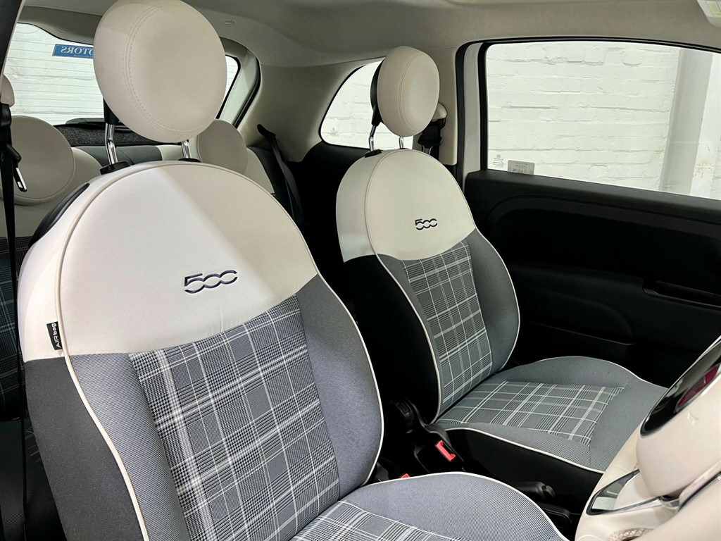 This 2021 Fiat 500 Lounge is a superb example, having had only one owner since new. It features a fuel efficient 1.0 litre petrol engine, meeting Euro 6 emissions standards. Inside, you'll find a fixed glass roof with a sunblind, offering a panoramic view, and a 7 inch HD touchscreen radio complete with Bluetooth, USB, and DAB capabilities. Stay connected and entertained with Apple CarPlay and Android Auto compatibility, and enjoy a comfortable drive thanks to the air conditioning. For added convenience, rear parking sensors are included to assist with parking. This Fiat 500 Lounge offers excellent value, with a remarkable fuel economy of 53 miles per gallon, making it a cost effective choice for your daily journeys. Its low insurance group rating further contributes to its affordability. Furthermore, its low CO2 emissions highlight its environmental consideration compared to many other vehicles in its class. Fixed Glass Roof with Sunblind,Air Conditioning,15in Alloy Wheels,Rear Parking Sensors,Apple CarPlay - Android Auto Connectivity,Cruise Control,Chrome Kit,7in HD Touchscreen Radio with Bluetooth - USB and DAB,Technoleather Steering Wheel with Audio Controls,LED Daytime Running Lights,ABS with EBD,Automatic Door Locking,Electric Front Windows,Electrically Adjustable Painted Door Mirrors with Defrosting and External Temperature Sensor,50-50 Split Folding Rear Seat with Height Adjustable Head Restraints,Chrome Plated Exterior Door Handles,Front Seats with Memory Function,Body Coloured Bumpers,Height Adjustable Drivers Seat,7 Airbags,Remote Central Locking,Speed Limiter,Steering Wheel - Height Adjustment,ESC - Electronic Stability Control,TPMS - Tyre Pressure Monitoring System,Fix and Go Puncture Repair Kit,Fabric - Black-Light Grey-Ivory with Ivory Ambience,*FINANCE AVAILABLE+NO ADMIN FEES*