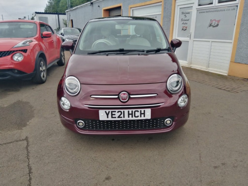 This 2021 Fiat 500 Lounge offers excellent value with a 3 month warranty and 12 months MOT provided on purchase. This stylish city car is equipped with a fuel efficient 1.0L Petrol engine, meeting Euro 6 emission standards. Inside, you'll find a 7in HD Touchscreen Radio with Bluetooth, USB and DAB, along with Apple CarPlay and Android Auto connectivity for seamless smartphone integration. Comfort is enhanced by front seats with a memory function, and convenience is assured with rear parking sensors and air conditioning. The Fiat 500 Lounge stands out with its impressive fuel economy, achieving up to 53 mpg, which indicates it is more economical than many similar vehicles. Furthermore, its low insurance group and low CO2 emissions highlight its cost effectiveness and environmental consideration compared to other cars in its class. The car will be offered with a Free RAC inspection, Free 1 Yr MOT, Free RAC Warranty and Free 1Yr RAC Recovery package. We also offer finance packages to suit most credit profiles, for a free finance check apply online now at www.belmontautos.co.uk Please see our terms and conditions and status disclosure. 15in Alloy Wheels, 50-50 Split Folding Rear Seat with Heigh, 7 Airbags, 7in HD Touchscreen Radio with Bluetooth , ABS with EBD, Air Conditioning, Apple CarPlay - Android Auto Connectivit, Automatic Door Locking, Avantgarde Bordeaux, Body Coloured Bumpers, Chrome Kit, Chrome Plated Exterior Door Handles, Cruise Control, Electric Front Windows, Electrically Adjustable Painted Door Mir, ESC - Electronic Stability Control, Fabric - Black-Light Grey-Ivory with Ivo, Fix and Go Puncture Repair Kit, Fixed Glass Roof with Sunblind, Fog Lights, Front Seats with Memory Function, Height Adjustable Drivers Seat, LED Daytime Running Lights, Rack and Pinion with Electric Power Stee, Rear Parking Sensors, R
