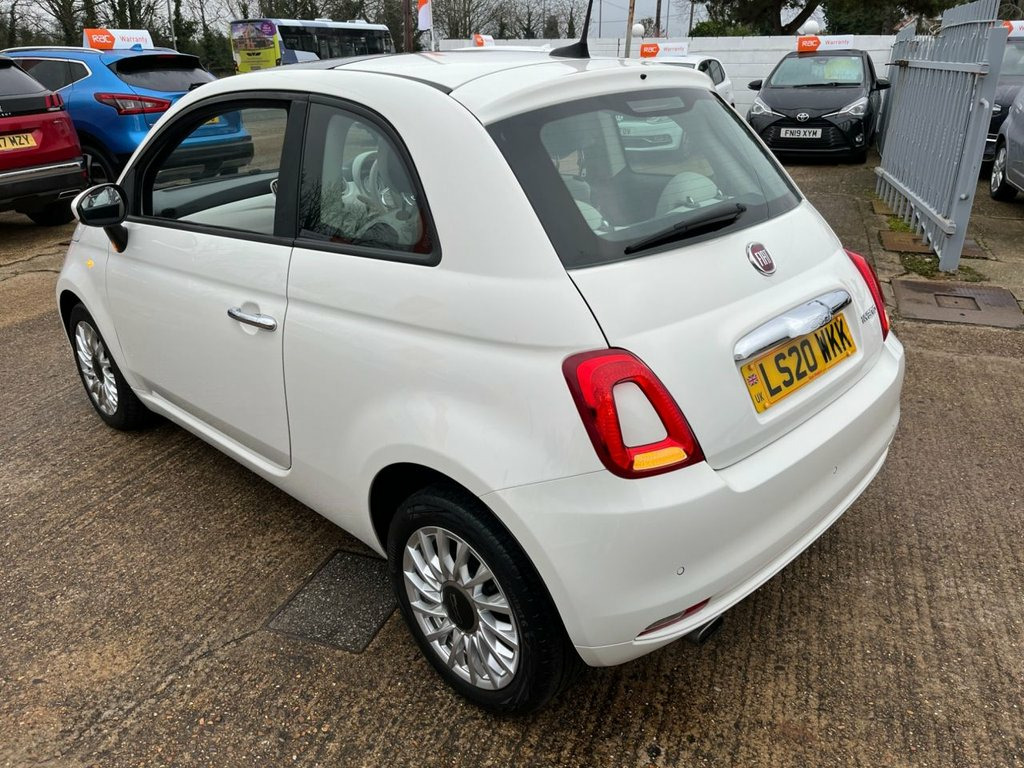 This 2020 Fiat 500 Lounge offers exceptionally low mileage for its age, having covered just 27,013 miles. Powered by an efficient 1.0 litre petrol engine and meeting Euro 6 emissions standards, it is well suited to both city driving and longer journeys. The vehicle benefits from a partial service history, with its most recent service completed on 28 January 2026 at 27,018 miles. Presented in the desirable Lounge specification, this Fiat 500 is well equipped with a 7 inch HD touchscreen radio featuring Bluetooth, USB and DAB, along with Apple CarPlay and Android Auto for seamless smartphone integration. Rear parking sensors make manoeuvring easier, while cruise control and a speed limiter support relaxed driving on longer trips. The fixed glass roof with sunblind adds light and space to the cabin, enhancing the overall driving experience. Comfort and practicality are well catered for with air conditioning, electric front windows, electrically adjustable heated door mirrors, a height adjustable driver's seat and front seats with memory function. Safety features include seven airbags, electronic stability control, anti lock braking with electronic brakeforce distribution and tyre pressure monitoring. The Fiat 500 Lounge stands out for its excellent fuel economy, achieving up to 53 miles per gallon, and its low CO2 emissions make it a more environmentally conscious choice compared with many similar vehicles. It also sits in a low insurance group, helping to keep running c 15in Alloy Wheels, 50-50 Split Folding Rear Seat with Heigh, 7 Airbags, 7in HD Touchscreen Radio with Bluetooth , ABS with EBD, Air Conditioning, Apple CarPlay - Android Auto Connectivit, Automatic Door Locking, Body Coloured Bumpers, Chrome Kit, Chrome Plated Exterior Door Handles, Cruise Control, ESC - Electronic Stability Control, Electric Front Windows, Electrically Adjustable Painted Door Mir, Fix and Go Puncture Repair Kit, Fixed Glass Roof with Sunblind, Fog Lights, Front Seats with Memory Function, Height Adjustable Drivers Seat, LED Daytime Running Lights, Rack and Pinion with Electric Power Stee, Rear Parking Sensors, Remote Central Locking, Speed Limiter, Steering Wheel - Height A