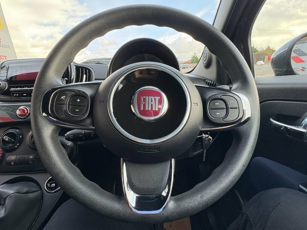 Powered by italy's finest 1.0 litre petrol engine and paired with a 6 speed manual gear box this fiat produces 70 bhp and returns an impeccable 57.7 mpg on a combined cycle The Fiat has travelled just under 12,000 miles, considering the year of manufature its a very low millage vehicle The 500 is known for being a a great first car for someone benefiting from group 8 insurance Having 1 previous owner you can cleary see this vehicle has been looked after inside and outside As you would expect from the 71 plate it comes with great spec such as telephone connection, steering wheel mounted controls, radio and just so much more! 14in Steel Wheels, 7 Airbags, ABS with EBD, Air Conditioning, Automatic Door Locking, Body Coloured Bumpers, Body Coloured Dashboard, Chrome Plated Exterior Door Handles, DAB Radio with USB, ESC - Electronic Stability Control, Electric Front Windows, Electrically Adjustable and Heated Body , Fix and Go Puncture Repair Kit, LED Daytime Running Lights, Rack and Pinion with Electric Power Stee, Remote Central Locking, Seats - Folding Rear Back, Speed Limiter, Steering Wheel - Height Adjustment, Steering Wheel Audio Controls, TPMS - Tyre Pressure Monitoring System, Fabric - Blue with Black Ambience, Tech House Grey