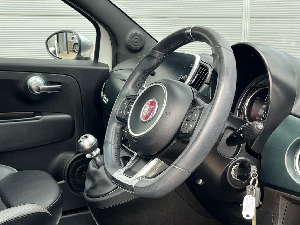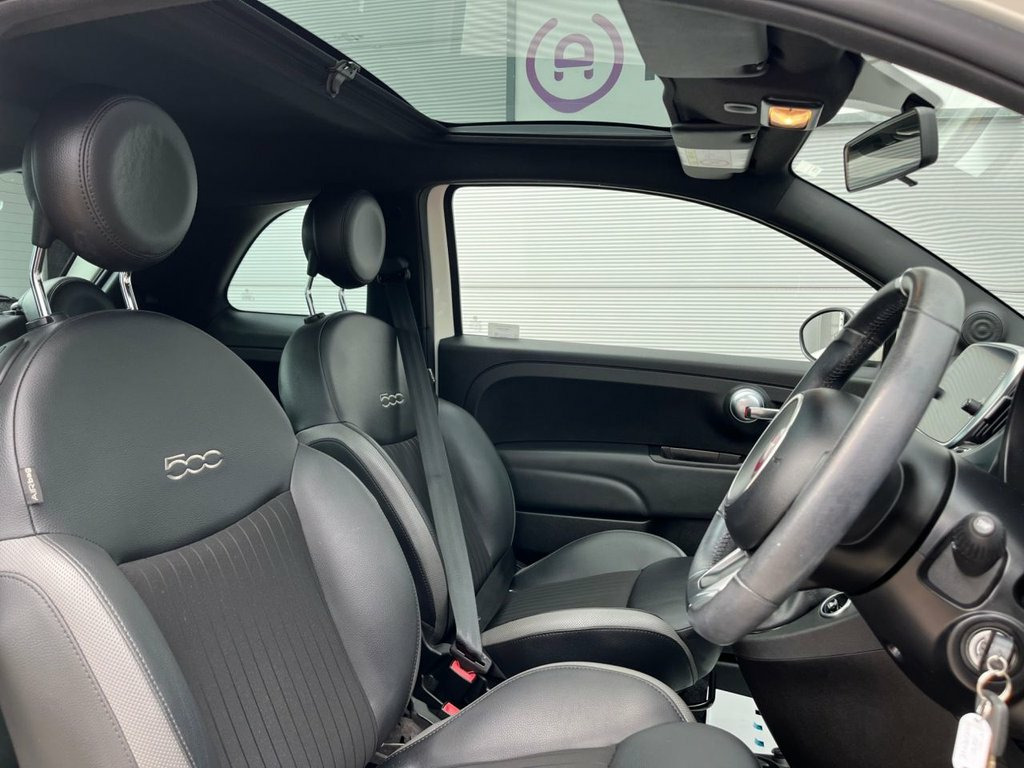 We are pleased to offer this low mileage Fiat 500 Rockstar finished in upgraded Bossa Nova white paint with stylish diamond cut alloy wheels and a specification that you'd expect in a much larger car! As you sit in the part leather sport seats behind the chunky, flat bottom steering wheel you feel this cars sporty credentials. On the leather wrapped steering wheel are audio controls as well as the controls for the digital dash that houses your optical parking sensors. In the centre console this example boasts electronic climate control and a large touch screen media centre that boast wide screen Sat Nav, DAB Radio. Bluetooth and even Apple Car Play. Under the bonnet is a 1.0 petrol that also uses a battery to give you extra zippyness around town and more than enough power for motorway driving.  16in Alloy Wheels, 50-50 Split Folding Rear Seat with Heigh, 7 Airbags, 7in HD Touchscreen Radio with 3D Navigat, 7in TFT Instrument Cluster, ABS with EBD, Apple CarPlay - Android Auto Connectivit, Automatic Climate Control, Automatic Door Locking, Body Coloured Sports Bumpers, Cruise Control, Dark Tinted Rear Windows, ESC - Electronic Stability Control, Electric Front Windows, Electrically Adjustable Satin Graphite D, Fix and Go Puncture Repair Kit, Fixed Glass Roof with Sunblind, Fog Lights, Front Seats with Memory Function, Height Adjustable Drivers Seat, Kickplates - Chrome, LED Daytime Running Lights, Rack and Pinion with Electric Power Stee, Rear Parking Sensors, Remote Central Locking