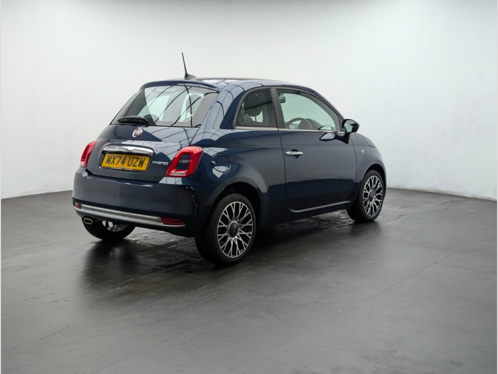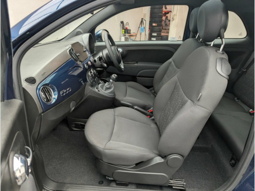 16" alloys, Bluetooth, Cruise control, Fixed glass roof and Rear parking sensors. The Fiat 500 Top is an iconic city car that blends retro-inspired design with modern efficiency. Powered by a 1.0 MHEV petrol engine (70 bhp) with a manual gearbox, it offers smooth, economical driving, making it perfect for urban commutes and tight city streets. 16in Alloy Wheels, 50-50 Split Folding Rear Seat with Heigh, 7 Airbags, 7in HD Touchscreen Radio with Bluetooth , 7in TFT Instrument Cluster, ABS - Anti-Lock Braking System with EBD , Apple CarPlay - Android Auto Connectivit, Automatic Climate Control, Automatic Door Locking, Body Coloured Bumpers, Body Coloured Dashboard, C Pillar Shelf - Black, Chrome Exhaust Tailpipe, Chrome Kit, Chrome Plated Exterior Door Handles, Cruise Control, Door Panel - Black, Door Sill Plates, Electric Front Windows, Electrically Adjustable and Heated Body , Epic Blue, ESC - Electronic Stability Control, Fabric - Black with Black Ambience, Fix and Go Puncture Repair Kit, Fixed Glass Roof, Fog Lights, Halogen Head