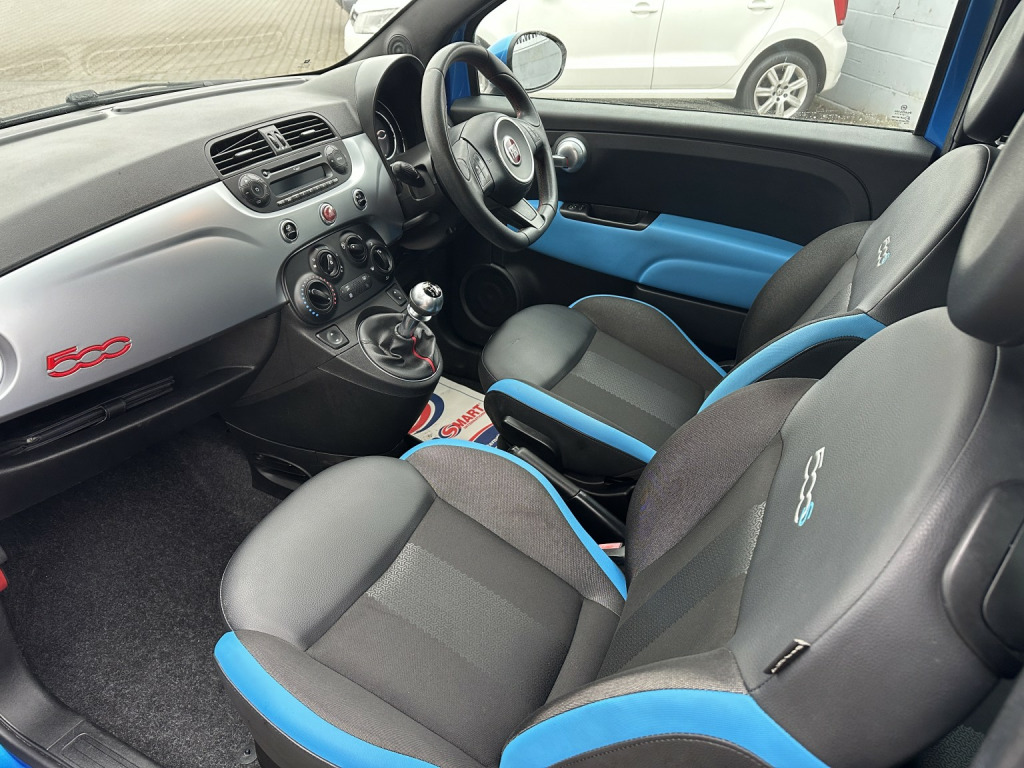 VERY BRIGHT FIAT 500S IN DEEP METALLIC BLUE WITH CONTRASTING BLUE/BLACK HALF LEATHER INTERIOR. It has a very good service history with 7 stamps in the book and an MOT through to December 2026. It has electric windows, remote central locking, alloy wheels, air conditioning, Bluetooth phone preparation, AM/FM radio cd player with USB input. leather multifunction steering wheel with audio remote controls and much more. 3 months parts and labour warranty is included and finance is also available so please ask for more details. ULEZ.