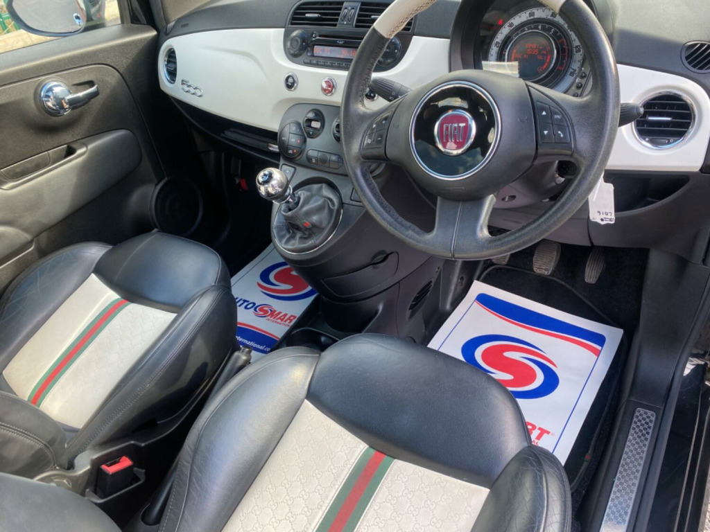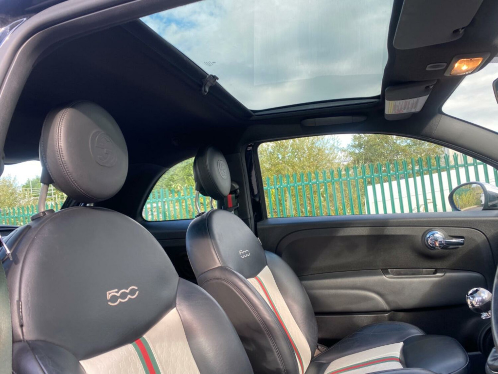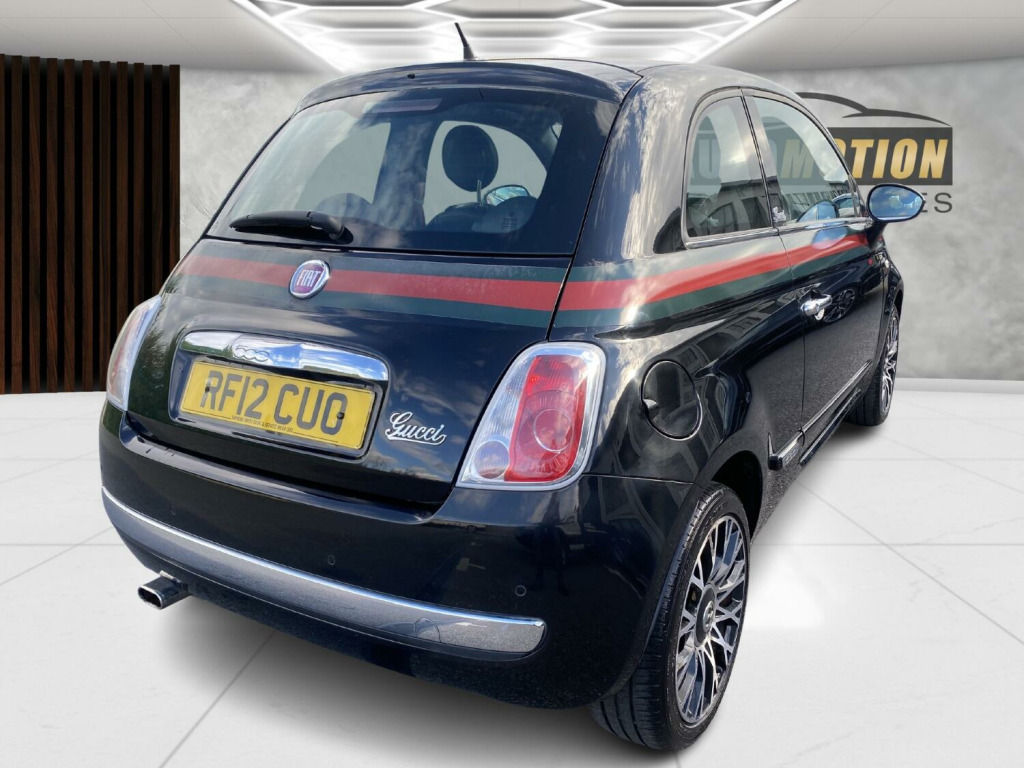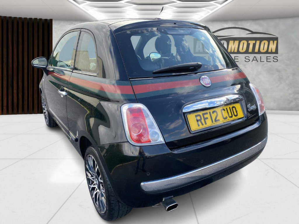 2012 Fiat 500 by Gucci, 1.2 Petrol, Manual, 3 Door Hatchback. , This stunning Gucci edition Fiat 500 really looks incredible, has covered 69,000 miles from new and will be happily supplied by us with a brand new 12 months MOT upon sale. , It has been maintained meticulously by its former keepers having been Serviced at the following intervals;, 1st Service on 8,948 miles, 2nd Service on 14,715 miles, 3rd Service on 16,690 miles, 4th Service on 21,533 miles, 5th Service on 26,161 miles, 6th Service on 28,971 miles, 7th Service on 34,434 miles, 8th Service on 37,776 miles, 9th Service on 49,919 miles, 10th Service on 58,419 miles, 11th Service on 66,768 miles. , Being the ByGucci model this Fiat boasts a great spec including Alloy Wheels, Air Conditioning, AUX In, CD/Radio, Electric Mirrors, Electric Windows, Gucci Embroidered Seats, Gucci Gearstick, Gucci Seatbelts, Sunroof, Remote Central Locking and more. , Viewing and test drive is highly recommended on this ultra rare 500 ByGucci which we will also supply with 3 months warranty at the point of sale. , 5,495 Part Exchange is welcome and Finance is available at great rates. , Here at Automotion Vehicle Sales all our vehicles undergo a rigorous Multipoint Inspection and are Valeted and Detailed to a high standard prior to sale.