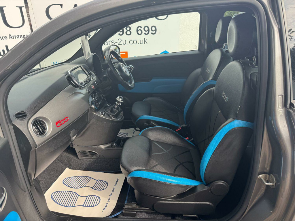 Cars2u - Quality Used Cars with a Personal Touch, , Established in 2012, Cars2u is a family-run business dedicated to providing quality used vehicles with a friendly ,no-pressure approach. Conveniently located on the outskirts of Ipswich, we have excellent transport links via the A12 and A14 and are just a 10 minute drive from Ipswich train station. At Cars2u , every vehicle we sell is HPI clear and undergoes a full inspection to ensure it meets our high standards .For added peace of mind ,all cars come with an RAC warranty. We also offer finance options ,part exchange and nationwide delivery, making it easier than ever to find your perfect car. , Our focus is on customer satisfaction, providing a relaxed and professional service without the pressure of a hard sell. whether youre looking for your next car or simply exploring your options were here to help. , Visit Cars2u today and experience a stress-free way to buy a car. , WE ARE VERY PLEASED TO OFFER THIS VERY GOOD LOOKING VERY CLEAN 2016 66 FIAT 500 1.2 S , GOOD SPEC ,SHE HAS COVERED A MEAR 92,000 MILES FROM NEW HAS A GOOD SERVICE RECORD ,SHE WILL BE SERVICED WHEN SOLD AS WELL AS A CURRENT MOT UNTILL 09/2026 AND WILL COME WITH A 3 MONTH RAC WARRANTY FOR HER NEW OWNERS COMPLETE PEACE OF MIND.