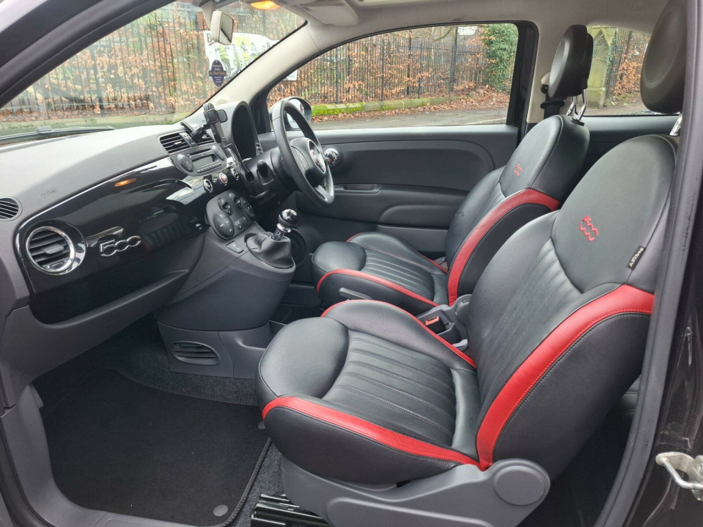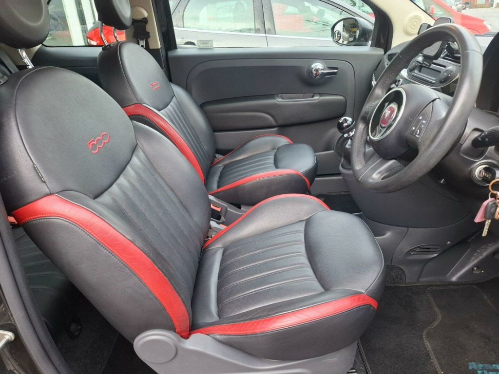 ** VIEWING BY APPOINTMENT ONLY ** FULL SERVICE HISTORY, 2 KEYS, HPI CLEAR WITH FULL REPORT, MOT TILL THE 05/10/2026, PART EXCHANGE WELCOME, FINANCE AVAILABLE, ALL MAJOR DEBIT CARDS ACCEPTED, This 2015 Fiat 500 Cult boasts exceptionally low mileage for its age, having covered just 41,000 miles, and comes with a clear vehicle history check. This stylish city car is powered by an efficient 1.2 litre petrol engine and meets Euro 6 emissions standards. Inside, you'll find a comfortable cabin featuring automatic climate control and a fixed glass roof leather seats for a bright and airy feel. Practicality is enhanced with rear parking sensors and the Blue&Me hands free system with a USB port, while the passenger seats offer a memory function for added convenience.The Fiat 500 Cult stands out with its impressive fuel economy, achieving a remarkable 59 miles per gallon, which indicates it is more economical than many similar vehicles. Furthermore, its low CO2 emissions and low insurance group highlight its cost effectiveness for everyday driving. This combination of low running costs, desirable features, and excellent condition makes this 2015 Fiat 500 Cult a compelling choice.. 12V Socket - Front, 16in Alloy Wheels - 74A, ABS - Anti-Lock Braking System, ASR - Anti-Slip Regulation, Airbags - Driver, Airbags - Front Side, Airbags - Passenger, BAS - Brake Assistance System, Blue&Me - Hands Free System with USB Port, Body Coloured Bumpers, Chrome Kit, Climate Control - Automatic Monozone, Drivers Knee Airbag, Dualdrive Power Steering, EBD - Electronic Brakeforce Distribution, ESP - Electronic Stability Programme, Electric Front Windows, Electrically Adjustable Heated Door Mirrors, Exterior Temperature Sensor, Fix and Go Puncture Repair Kit, Fixed Glass Roof, GSI - Gear Shift Indicator, Grab Handle, Hill Holder, Locking Wheel Nuts, MSR - Motor Slip Regulation, Radio-CD and MP3 Player, Rear Parking Sensors, Remote Central Locking, Roof - Black, Seats - Passengers Memory Function, Space Saver Spare Wheel, Steering Wheel - Black, Steering Wheel - Height Adjustment, Steering Wheel - Leather with Audio Controls, Steering Wheel Audio Controls, TFT Screen - Colour 7in, Thermal Windows, Tyre Pressure Monitor System, Window Airbags, Leather - Black-Red with Black Ambience, Leather - Red-Ivory with Ivory Ambience.