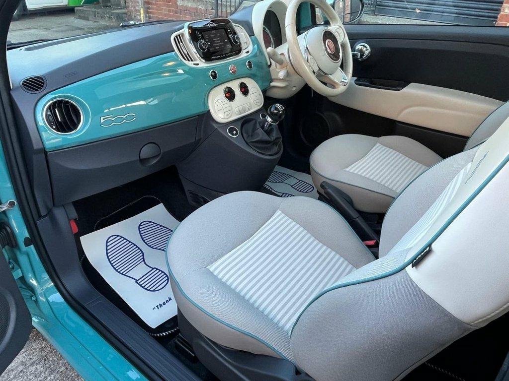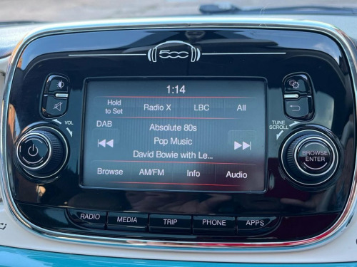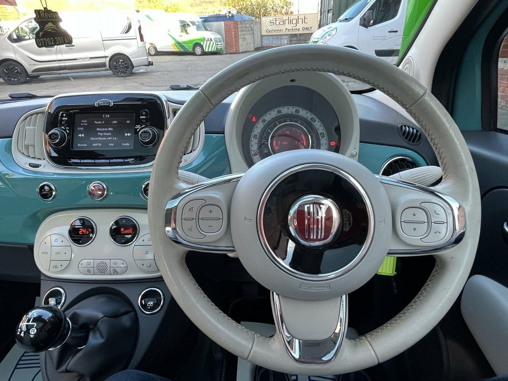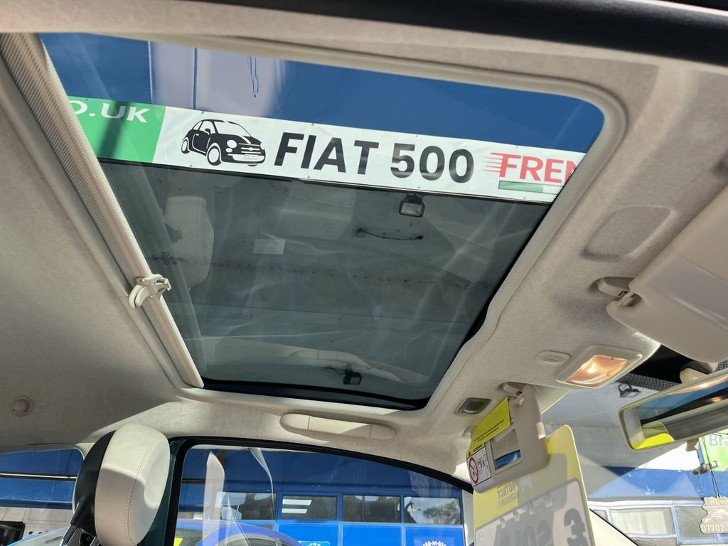 Come check this out at Fiat 500 Frenzy in Sheffield! We've got something very special in stock — a Fiat 500 1.2 Anniversario in Teal Blue. This model is ultra-rare, and although it's higher on the mileage, it's definitely low on price. With just one owner from new and a full service history, you can buy with confidence knowing this little beauty has been well cared for and is ready to serve you well. Don't miss your chance to grab a truly unique Fiat 50 16in Alloy Wheels - Vintage, 50-50 Split Folding Rear Seat with Heigh, 5in Touchscreen Radio with AUX - USB - D, 7 Airbags, ABS with EBD, Anniversario Logo on Tailgate, Automatic Climate Control, Automatic Door Locking, Body Coloured Bumpers with Chrome Detail, Body Coloured Dashboard, Chrome Finished Door Mirror Covers, Chrome Plated Exterior Door Handles, Chrome Trim on Bonnet, Cruise Control, Driver and Passenger Airbag with Dual St, Dualdrive Power Steering, ESC - Electronic Stability Control, Electric Front Windows, Electrically Adjustable Door Mirrors, Exterior Logos - Vintage Fiat, Fix and Go Puncture Repair Kit, Fixed Glass Roof with Sunblind, Fog Lights, Front Seats with Memory Func
