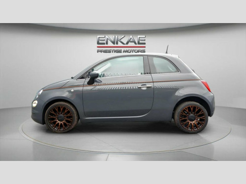 Enkae Presents: The Collezione Fall Edition FIAT 500 1.2 (68plate) Design The Collezione Fall model stands out with its exclusive styling, including a distinctive two-tone "Brunello" Avantgarde Bordeaux and Tech House Grey exterior. Chrome detailing on the bonnet strip and boot lid adds a refined touch, complemented by copper-finished alloy wheels and a chrome-plated "Collezione" badge for a signature finish. Interior Inside, the Collezione Fall edition showcases elegant pinstripe fabric upholstery, unique stitching on the floor mats, and "500" branded detailing throughout. A glossy dashboard finish adds a modern flair, while the hatchback variant comes equipped with a fixed glass sunroof as standard, enhancing the sense of space and light. Technology Equipped for convenience and connectivity, the model features a 5-inch or 7-inch touchscreen infotainment system with Bluetooth, DAB radio, and a USB port. Air conditioning ensures year-round comfort. Additional Features Standard practical features include front and rear parking sensors, fog lights, and height-adjustable front seats, making every journey easier and more enjoyable. 16in Alloy Wheels - Copper Finish, 50-50 Split Folding Rear Seat with Heigh, 5in Touchscreen Radio with AUX - USB - D, 7 Airbags, ABS with EBD, Air Conditioning, All Around Liner - Copper, Automatic Door Locking, Body Coloured Bumpers, Chrome Plated Exterior Door Handles, Chrome Trim on Bonnet, Collezione Badge on Tailgate, Copper Finished Key Cover, Cruise Control, Dualdrive Power Steering, ESC - Electronic Stability Control, Electric Front Windows, Electrically Adjustable Painted Door Mir, Fix and Go Puncture Repair Kit, Fixed Sunroof, Fog Lights, Front Seats with Memory Function, Height Adjustable Drivers Seat, LED Daytime Running Lights, Rain and Dusk Sensors, Rear Parking Sensors, Remot