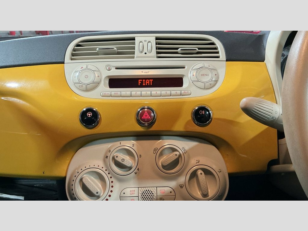 2015 FIAT 500 1.2 COLOUR THERAPY – SUNSHINE YELLOW WITH RETRO WHITE TRIMS Turn every journey into a mood-booster with this charming 2015 Fiat 500 Colour Therapy in vibrant Sunshine Yellow – complete with iconic retro white trims that give it that unmistakable vintage-cool vibe. ? Key Features: 1.2 Petrol Engine – economical, smooth, and perfect for town or city driving Low running costs and cheap to insure – ideal for new drivers or daily commuters Retro white mirrors, hubcaps & interior accents – classic styling with a modern twist Bright and cheerful yellow finish – guaranteed to turn heads Spacious for its size, with comfortable seating and clever storage Air conditioning, CD/Radio, electric windows, and all the essentials Nippy and fun to drive, with that iconic Fiat charm Whether you're looking for a stylish first car, a reliable commuter, or something that makes you smile every time you see it, this Fiat 500 Colour Therapy delivers personality and practicality in one adorable package. 12V Socket - Front, 14in Steel Wheels, 14in Wheel Covers - White, ABS - Anti-Lock Braking System, ASR - Anti-Slip Regulation, Air Conditioning, Airbags - Driver, Airbags - Front Side, Airbags - Passenger, BAS - Brake Assistance System, Body Coloured Bumpers, Body Coloured Door Mirrors, Drivers Knee Airbag, Dualdrive Power Steering, EBD - Electronic Brakeforce Distribution, ESP - Electronic Stability Programme, Electric Front Windows, Fix and Go Puncture Repair Kit, GSI - Gear Shift Indicator, Grab Handle, Hill Holder, Locking Wheel Nuts, MSR - Motor Slip Regulation, Radio-CD and MP3 Player, Remote Central Locking, Seats - Passengers Memory Function, Space Saver Spare Wheel, Steering Wheel -