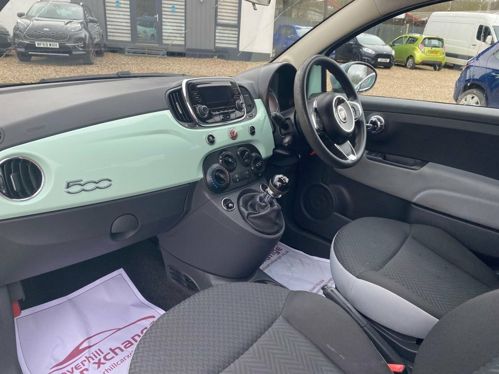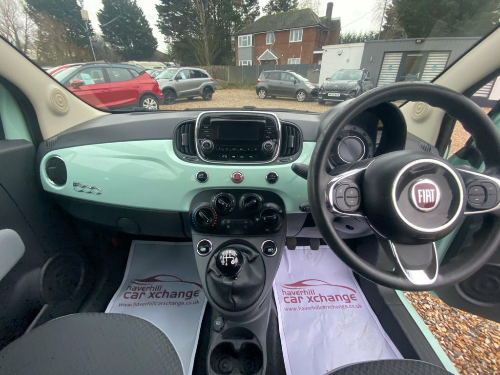 LONG MOT UNTIL 07.05.2026+RADIO-USB-AUX PORTS+AIR-CONDITIONING+ELECTRIC WINDOWS+LED DAYTIME RUNNING LIGHTS+DUALDRIVE POWER STEERING+'SMOOTH MINT' PAINT+15 INCH ALLOY WHEELS. At Haverhill Car Xchange we would like to offer you our Fiat 500 ECO Pop Star Hatchback which has been finished in a 'Smooth Mint' paint, 'Black-Grey-Light Grey with Black Ambience Cloth' upholstery. Specification Includes Radio with USB and AUX, Air-Conditioning, Gear Efficiency Indicator, Electric Front Windows, Body Coloured Bumpers, Chrome Plated Door Handles, LED Daytime Running Lights, Front Seats with Memory Function, Steering Wheel, Heated Rear Window, 15 Inch Alloy Wheels, Automatic Door Locking, ABS Breaking System, Airbags, Remote Central Locking and ISOFIX Anchorage Points for Child Seats. Cloth - Grey-Black-Light Grey with Black, Space Saver Spare Wheel, 15in Alloy Wheels - 431, 15in Alloy Wheels - 4WQ, 50-50 Split Folding Rear Seat with Heigh, 7 Airbags, ABS with EBD, Air Conditioning, Automatic Door Locking, Body Coloured Bumpers, Chrome Plated Exterior Door Handles, Driver and Passenger Airbag with Dual St, Dualdrive Power Steering, ESC - Electronic Stability Control, Electric Front Windows, Electrically Adjustable Painted Door Mir, Fix and Go Puncture Repair Kit, Front Seats with Memory Function, GSI - Gear Shift Indicator, Hazard Light Automatic Activation During, Heat Reflective Windows, Heated Rear Window, Height Adjustable Front Head Restraints, ISOFIX Attachment Poin