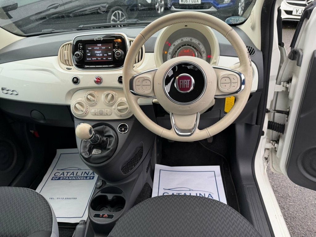 Fiat 500 1.2 ECO Pop Star – £20 Tax | Low Miles | Great Value Petrol | Manual | Euro 6 | 69 bhp | 63,509 Miles This Fiat 500 1.2 ECO Pop Star is a tidy, well-maintained example of Fiat's iconic and economical city car. With just 63,509 miles from new, only two former keepers, and service history up to 62k, it offers excellent value and low running costs. Powered by the efficient 1.2-litre petrol engine producing 69 bhp, it delivers smooth performance with very low running costs — including only £20 annual road tax and full Euro 6 compliance, making it ideal for town driving and clean-air zones. Finished in white with a dark cloth interior, this Pop Star model offers classic Fiat 500 styling, easy manoeuvrability, and practical everyday comfort. A clean, low-mileage example of the Fiat 500 Pop Star — economical, stylish, and great value for money. Vehicle Preparation & Warranty Every vehicle is supplied with a minimum of 6 months MOT. If the remaining MOT is less than 6 months at point of sale, the car will receive a FREE 12-month MOT prior to collection. All vehicles are fully up to date with servicing where required. We include a FREE 3-month engine warranty, provided on a return-to-base basis. For additional peace of mind, we offer comprehensive nationwide warranty upgrades covering both parts and labour. These policies can include cover for major components such as the engine, gearbox, turbo, electrics, air conditioning, suspens 12V Socket - Front, 15in Alloy Wheels - 4WQ, 50-50 Split Folding Rear Seat with Heigh, 7 Airbags, ABS with EBD, Air Conditioning, Automatic Door Locking, Body Coloured Bumpers, Chrome Plated Exterior Door Handles, Dualdrive Power Steering, ESC - Electronic Stability Control, Electric Front Windows, Electrically Adjustable Painted Door Mir, Fix and Go Puncture Repair Kit, Front Seats with Memory Function, Fuel Cap with Tap, GSI - Gear Shift Indicator, Hazard Light Automatic Activation During, Heat Reflective Windows, Heated Rear Window, Height Adjustable Front Head Restraints, ISOFIX Attachment Points for Child Safet, Instrument Panel with Rev Counter, LED Daytime Running Lights, Radio with U