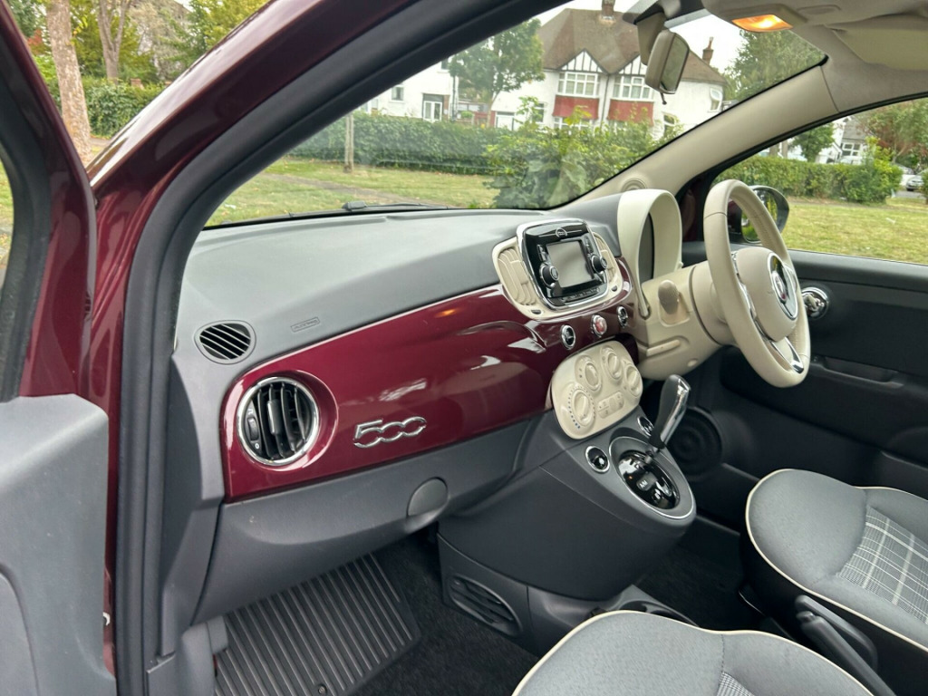 This 2016 Fiat 500 Lounge boasts exceptionally low mileage for its age, having covered just 39,000 miles, and benefits from a full service history with an MOT valid until January 2026. This Euro 6 compliant 1.2L petrol model is a clear vehicle history check and comes with desirable features including air conditioning, rear parking sensors, and front seats with a memory function. Enjoy your journeys with the 5in touchscreen radio offering AUX, USB, DAB, and Bluetooth connectivity, all while appreciating the fixed glass roof with its integrated sunblind.The highlights of this Fiat 500 Lounge demonstrate its superior value compared to similar vehicles. Its impressive fuel economy of 63 mpg means fewer trips to the petrol station, and its low insurance group rating contributes to lower running costs. Furthermore, its low CO2 emissions are beneficial for the environment. This combination of efficiency, affordability, and thoughtful features makes this Fiat 500 Lounge a compelling choice. ace saver spare wheel, cloth - black-light grey-ivory with ivory ambience, 12v socket - front, 15in alloy wheels, 50-50 split folding rear seat with height adjustable head restraints, 5in touchscreen radio with aux - usb - dab - bluetooth, 7 airbags, abs with ebd, air conditioning, automatic door locking, body coloured bumpers, chrome kit, chrome plated exterior door handles, dualdrive power steering, esc - electronic stability control, electric front windows, electrically adjustable painted door mirrors, fix and go puncture repair kit, fixed glass roof with sunblind, fog lights, front seats with memory function, fuel cap with tap, gsi - gear shift indicator, hazard light automatic activation during emergency braking, heat reflective windows, heated rear window, height adjustable drivers seat, height adjustable front head restraints, isofix attachment points for child safety seat on rear seat, instrument panel with rev counter, led daytime running lights, rear parking sensors, rear window wiper-washer, remote central locking, seats-back pockets, steering wheel - height adjustment, steering wheel - leather with audio controls, tpms - tyre pressure monitoring system, trip computer