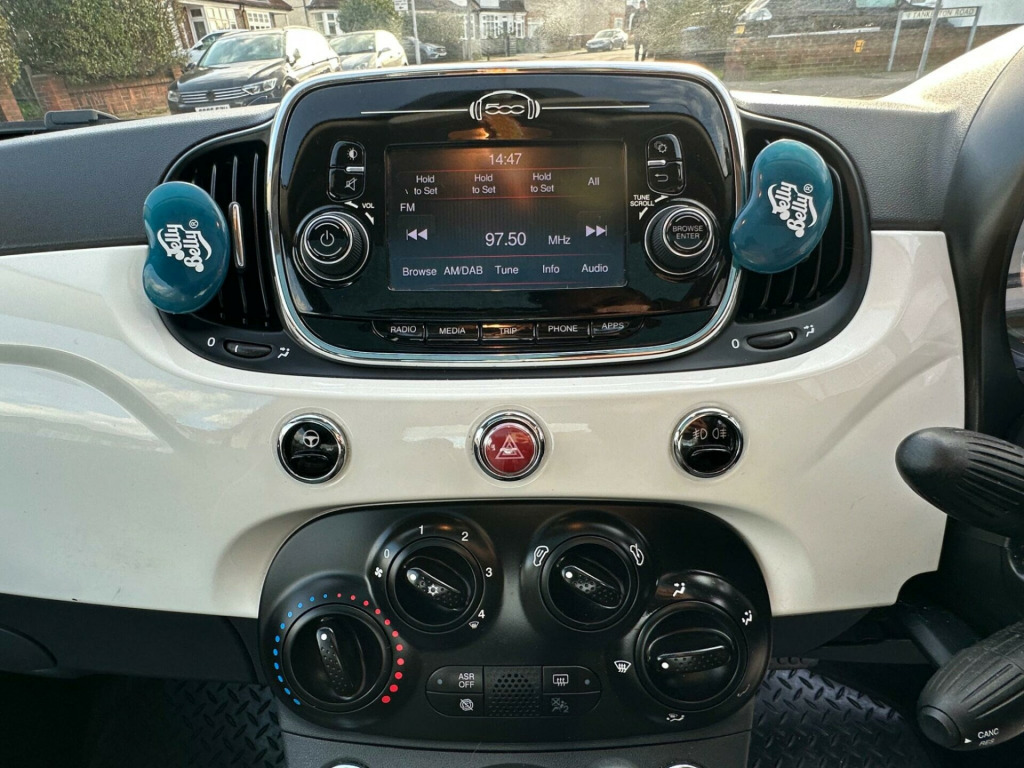 Discover this charming 2017 Fiat 500 Lounge, boasting exceptionally low mileage for its age at just 45,000 miles. This stylish city car is powered by an efficient 1.2 litre petrol engine, meeting Euro 6 emission standards. Inside, you'll find a comfortable cabin equipped with air conditioning, a 5-inch touchscreen radio featuring AUX, USB, DAB, and Bluetooth connectivity, and a fixed glass roof with a sunblind for an airy feel. The front seats also benefit from a memory function, adding a touch of convenience.This Fiat 500 Lounge is designed to be economical and easy to own. Its low CO2 emissions and placement in a low insurance group highlight how it offers a more cost-effective driving experience compared to many other vehicles. For added peace of mind and ease of parking, it comes fitted with rear parking sensors. This combination of features makes it an appealing choice for those seeking a practical and enjoyable car.We offer an Extended comprehensive Parts/ Labour warranty Ranging from 3 to 36 months. Over 80 vehicles are in stock; all cars are HPI-checked (clear). We are dedicated to providing the best customer experience before and after your purchase; therefore, Mazz Motors is highly rated by our customers' Reviews on ''Auto Trader High RatedAppointments Only!!! v socket - front, 15in alloy wheels, 50-50 split folding rear seat with height adjustable head restraints, 5in touchscreen radio with aux - usb - dab - bluetooth, 7 airbags, abs with ebd, air conditioning, automatic door locking, body coloured bumpers, chrome kit, chrome plated exterior door handles, dualdrive power steering, esc - electronic stability control, electric front windows, electrically adjustable painted door mirrors, fix and go puncture repair kit, fixed glass roof with sunblind, fog lights, front seats with memory function, fuel cap with tap, gsi - gear shift indicator, hazard light automatic activation during emergency braking, heat reflective windows, heated rear window, height adjustable drivers seat, height adjustable front head restraints, isofix attachment points for child safety seat on rear seat, instrument panel with rev counter, led daytime running lights, rear parking sensors, rear window wiper-washer, remote central locking, seats-back pockets, steering wheel - height adjustment, steering wheel - leather with audio controls, tpms - tyre pressure monitoring system, trip computer, cloth - black-light grey-ivory with black ambience