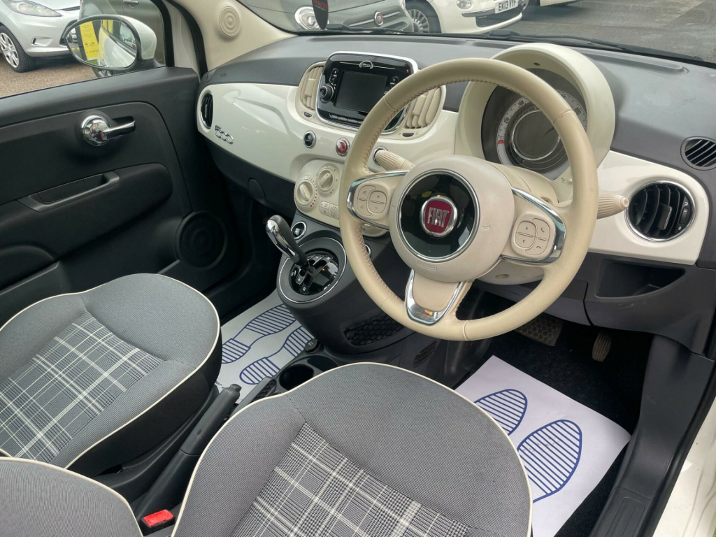 This 2017 Fiat 500 1.2 Lounge Dualogic Euro 6 (s/s) 3dr Hatchback is currently available for £8,495 in Maidstone Kent with Petrol engine and Automatic gearbox. For more information or to arrange a viewing, click here to send us an email using form below.
