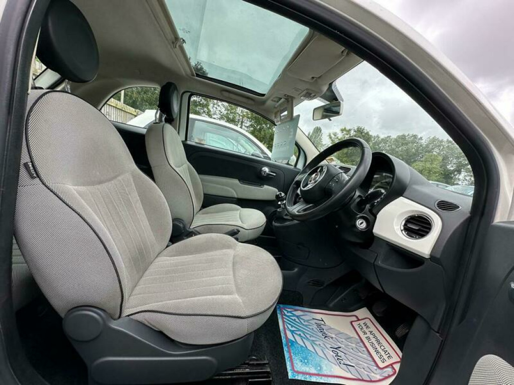 Here we have a well maintained and looked after Fiat 500 with 1 registered keeper, The vehicle has a total of 12 Services carried out, Service 1 - 10,649, Service 2 - 16,730, Service 3 - 21,781, Service 4 - 29,513, Service 5 - 37,559, Service 6 - 44,359, Service 7 - 50,280, Service 8 - 52,516, Service 9 - 53,007, Service 10 - 54,489, Service 11 - 56,162, Service 12 - 57,537, MOT expires 26/05/2026 with no advisories, £35 road tax, Panroof, Alloy wheels, Mechanically inspected and road tested, Warranty provided, 12 Months AA Roadside assistance, Highly rated dealers, 4.9* with over 200 reviews buy with confidence, Trading standards approved, AA approved, Call to reserve. Just arrived into stock please call for more information 15in 18Spoke Alloy Wheels, 15in Alloy Wheels, Air Conditioning, Black ambience, Body colour door mirrors, Fixed Glass Sunroof with sunblind, Ivory ambience