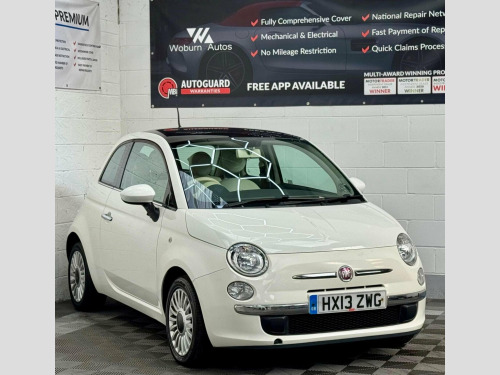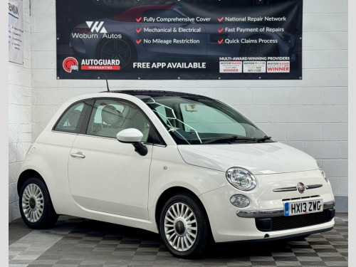 This 2013 Fiat 500 Lounge offers a distinctive style with its eye catching red and white colour inside. Under the bonnet, youll find a reliable 1.2 litre petrol engine, paired with a smooth manual transmission. The Lounge trim level ensures a comfortable and well equipped driving experience, further enhanced by stylish chrome door mirror housings and a unique red number 5 detail. This Fiat 500 Lounge stands out from other vehicles in its class thanks to its carefully curated combination of features. The distinctive stripe detailing and sporty alloy wheels provide a personalised aesthetic that sets it apart. Combined with the practical 1.2 litre engine and the refined Lounge specification, this car offers a charming and well appointed package for any driver. , , HPI CLEAR,2 KEYS, FINANCE AVAILABLE WITH £0 DEPOSIT AT COMPETITIVE RATES, PLEASE VISIT WWW.woburnautos.co.uk or CALL 01525868505, EXTENDED WARRANTY AVAILABLE ON ALL OUR CARS (3, 6, 12, 18, 24) , PREMIUM WARRANTY CAN BE ARRANGED, FRESH MOT CAN BE ARRANGED, SERVICE HISTORY, ONLY ONE PREVIOUS OWNER,PANORAMIC ROOF,ONLY £35 TAX PER YEAR. SMOOTH ENGINE AND GEARBOX, CLEAN BODYWORK AS OF ITS AGE, CLEAN INTERIOR, CLEAN ALLOYS WITH GOOD TYRES, VIEWING RECOMMENDED, PART EX WELCOME, â€â€â€â€â€â€â€â€â€â€â€â€â€â€ WOBURN AUTOS IS TRUSTED AND LEADING USED CAR DEALERSHIP IN LEIGHTON BUZZARD. OUR VEHICLES ARE SUITABLE FOR ALL OUR CUSTOMERS NEEDS. FOR MORE INFO AND TO VIEW OUR STOCK PLEASE VISIT OUR WEBSITE WWW.WOBURNAUTOS.CO.UK â€â€â€â€â€â€â€â€â€â€â€â€â€â€ OUR WORKING HOURS ARE MONDAY TO SATURDAY 10AM TO 6PM AND ON SUNDAY 10AM TO 4:00PM. â€â€â€â€â€â€â€â€â€â€â€â€â€SOCIAL DISTANCING IN PRACTICE, BY APPOINTMENT ONLY, ACCEPT ALL DEBIT/CREDIT CARDS, p/x welcome