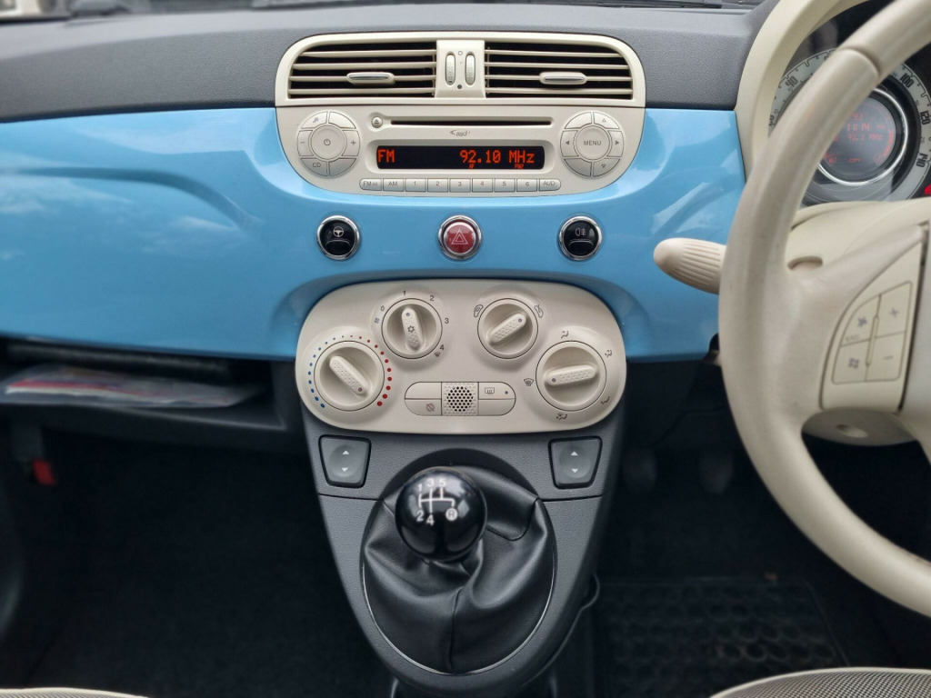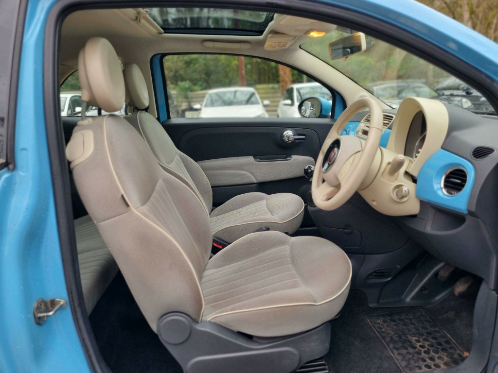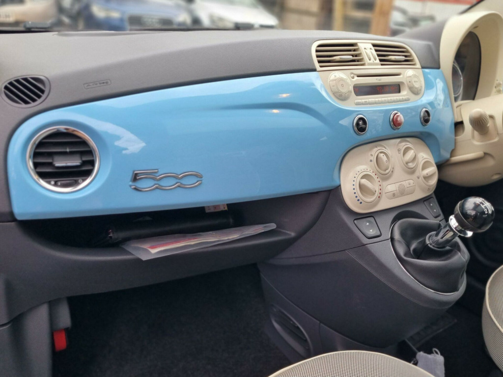 Fiat 500 Lounge - Low Insurance Cheap Tax Economical Ideal First CarIf you're looking for a reliable, affordable runaround or a perfect first car with low insurance and excellent fuel economy, this beautiful Fiat 500 Lounge is a fantastic choice.? Key Details- Fiat 500 Lounge model- ULEZ compliant- Cheap to insure & low road tax- Very economical on fuel- HPI clear (no categories)- Long MOT valid until 09/11/2026- Service history- 2 keys included? Mechanical ConditionThis vehicle has been fully mechanically inspected:- Engine, gearbox, and clutch all checked and working perfectly- Drives smoothly with no faults or issues- Everything operates exactly as it should? ConditionA very clean car for its age. Minor age-related marks may be present, as expected, but nothing significant.Finished in a beautiful baby blue colour definitely worth viewing! Included for Peace of Mind- FREE 3-month Gold Cover warranty- FREE 12-month AA breakdown cover- FREE local deliveryExtended warranty options available.Nationwide delivery also available at competitive rates (cost depends on distance). We are open 7 days a week inspections, viewings, and test drives welcome. For more information, please contact us. View more cars at: www.khanrovers.co.ukKind regards,Ali in 18spoke alloy wheels, 15in alloy wheels, air conditioning, black ambience, body colour door mirrors, fixed glass sunroof with sunblind, ivory ambience