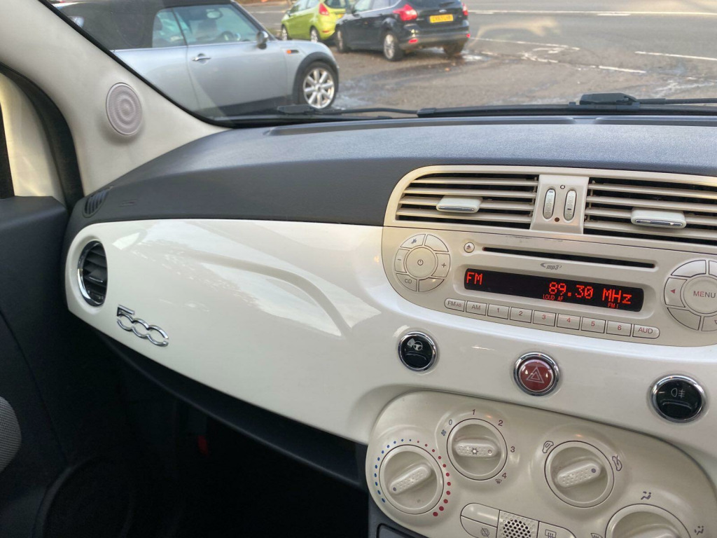 The car has got: AIR CON, AUX IN,PANORAMIC ROOF,RADIO CDThis 2012 Fiat 500 Lounge is a great find with its remarkably low mileage of just 64,900 miles for its age, complemented by a clear vehicle history check and partial service history. This stylish city car is powered by an efficient 1.2 litre petrol engine and features the desirable Lounge trim. Inside, you'll appreciate the comfort of air conditioning and the convenience of the Blue&Me hands free system with a USB port, allowing for seamless Bluetooth connectivity. The fixed glass roof with its integrated sunblind adds a touch of openness to the cabin, making every journey more enjoyable.The appeal of this Fiat 500 Lounge is further enhanced by its economical running costs. It boasts an impressive fuel economy of 59 miles per gallon, which is excellent for its class, and benefits from low CO2 emissions. Furthermore, its placement in a low insurance group means that insuring this car is likely to be very affordable, making it a sensible choice for many drivers. These factors combined indicate that this particular Fiat 500 offers a more cost effective and practical ownership experience compared to many other vehicles of its type. in alloy wheels, abs - anti-lock braking system, air conditioning, airbags - driver, airbags - front side, airbags - passenger, black ambience, blue&me - hands free system with usb port, body colour door mirrors, chrome kit, drivers knee airbag, ebd - electronic brakeforce distribution, electric front windows, electrically adjustable heated door mirrors, fixed glass roof with sunblind, fixed glass sunroof with sunblind, isofix child seat attachments, ivory ambience, lounge interior trim, power steering - dualdrive electric, radio-cd and mp3 player, remote central locking, space saver spare wheel, split folding 50:50 rear seat, steering wheel - height adjustment, steering wheel - leather with audio controls, window airbags