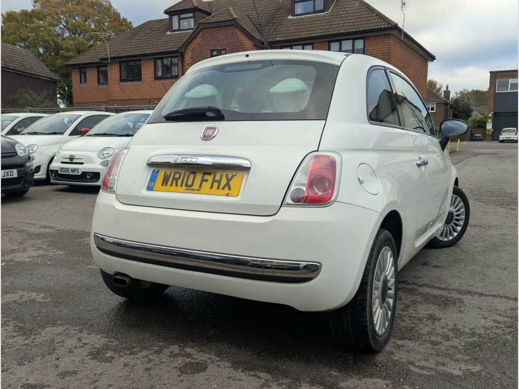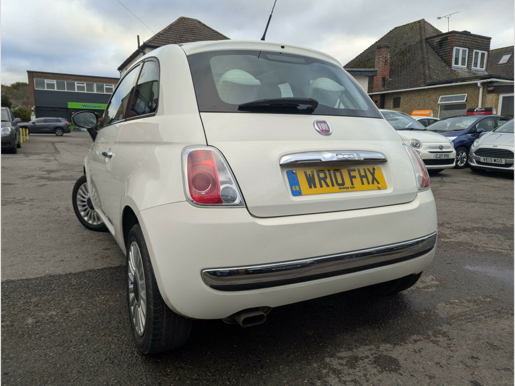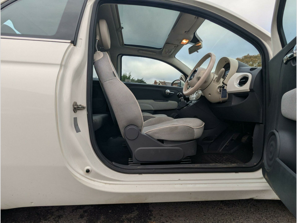 FULL SERVICE HISTORY, This 2010 Fiat 500 Lounge is presented with a clear vehicle history check and an MOT valid until October 2026, offering peace of mind for its next owner. This charming 1.2L petrol model, finished in the Lounge trim, comes equipped with distinctive ball stickers and stylish chrome effect door mirrors. Inside, you'll find the comfort of air conditioning and a fixed glass roof with a sunblind, providing an open and airy cabin experience. The Blue&Me hands free system with a USB port ensures seamless connectivity for your devices.The Fiat 500 Lounge stands out with its impressive fuel economy, achieving a remarkable 59 miles per gallon, which is better than many other vehicles in its class. Furthermore, its low insurance group rating means more savings on your annual premiums, and its low CO2 emissions contribute to a more environmentally friendly drive. This combination of cost effectiveness and enjoyable driving makes this Fiat 500 a sensible choice.. 15in Alloy Wheels, ABS - Anti-Lock Braking System, Air Conditioning, Airbags - Driver, Airbags - Front Side, Airbags - Passenger, Black ambience, Blue&Me - Hands Free System with USB Port, Body colour door mirrors, Chrome Kit, Drivers Knee Airbag, EBD - Electronic Brakeforce Distribution, Electric Front Windows, Electrically Adjustable Heated Door Mirrors, Fixed Glass Roof with Sunblind, Fixed Glass Sunroof with sunblind, ISOFIX Child Seat Attachments, Ivory ambience, Lounge Interior Trim, Power Steering - Dualdrive Electric, Radio-CD and MP3 Player, Remote Central Locking, Space Saver Spare Wheel, Split Folding 50:50 Rear Seat, Steering Wheel - Height Adjustment, Steering Wheel - Leather with Audio Controls, Window Airbags, ESP - Electronic Stability Programme, Ball stickers, Door Mirrors - Chrome Finish. Full service history