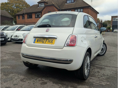 This 2010 Fiat 500 1.2 Lounge Euro 5 (s/s) 3dr Hatchback is currently available for £2,495 in Camberley Surrey with Petrol engine and Manual gearbox. For more information or to arrange a viewing, click here to send us an email using form below.