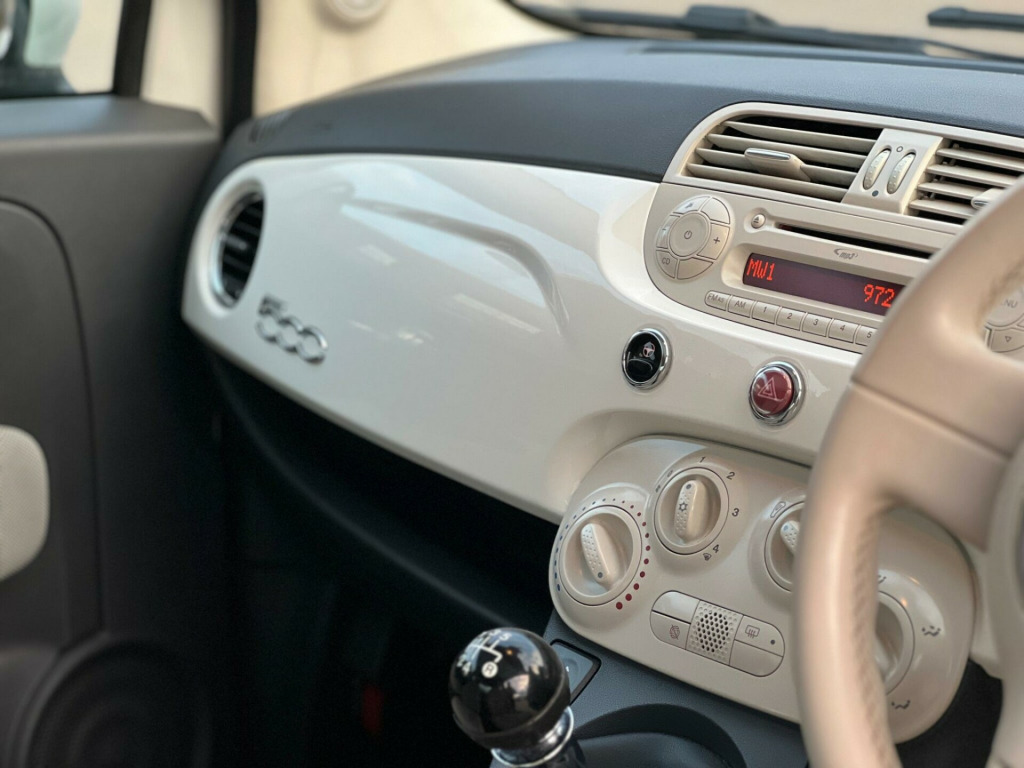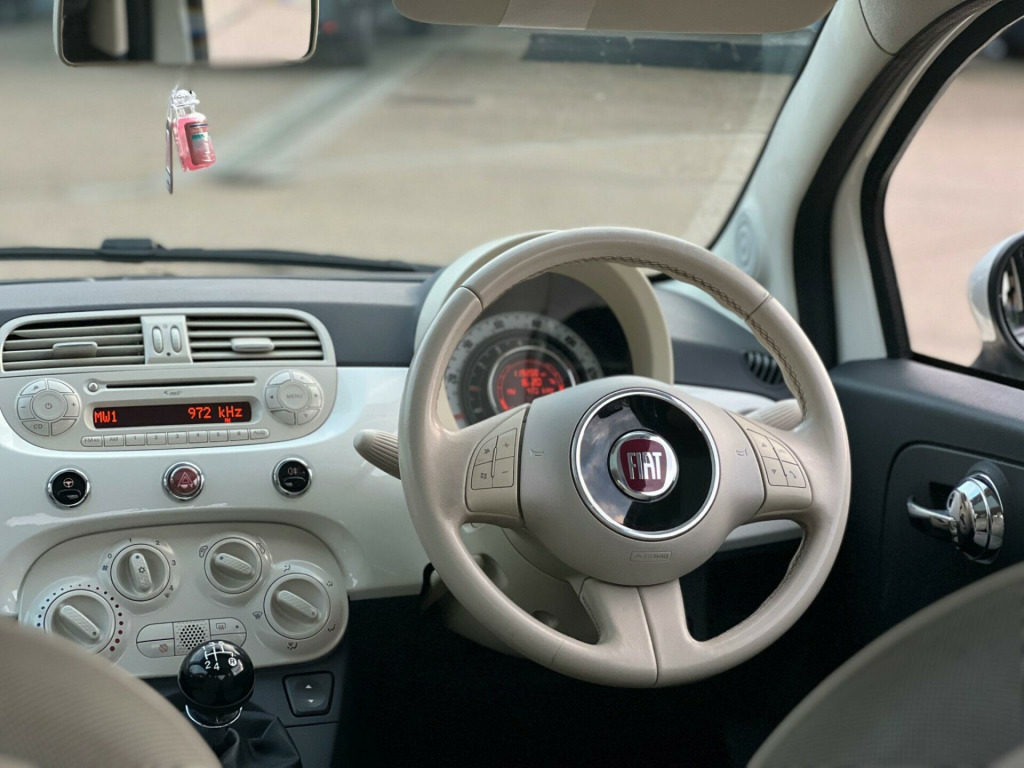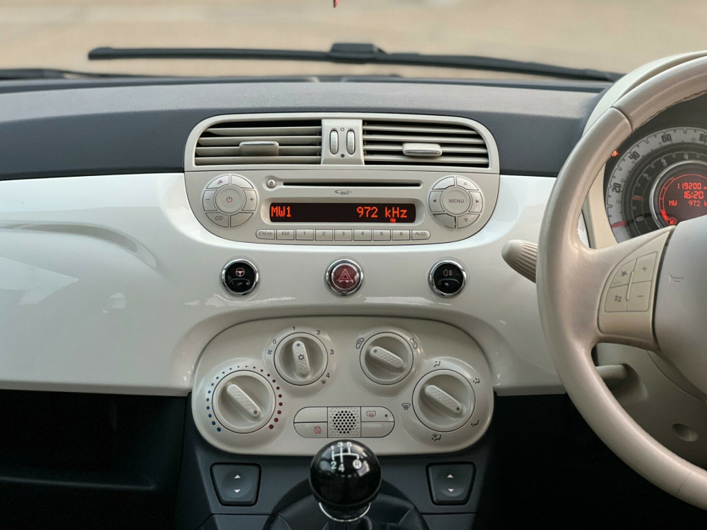 This 2012 Fiat 500 Lounge is a truly economical choice, boasting an impressive fuel economy of 59 miles per gallon. This particular model is equipped with a 1.2 litre petrol engine and features 16 inch alloy wheels, front fog lights, and a fixed glass roof with a sunblind, offering a panoramic sunroof experience.The Fiat 500 Lounge is designed to be cost effective to run, falling into a low insurance group and producing low CO2 emissions. These factors indicate that this vehicle is a more affordable and environmentally friendly option compared to many other cars in its class. g lights, front foglights, 15in alloy wheels - 433, 16in alloy wheels, 15in alloy wheels, abs - anti-lock braking system, air conditioning, airbags - driver, airbags - front side, airbags - passenger, black ambience, blue&me - hands free system with usb port, body colour door mirrors, chrome kit, drivers knee airbag, ebd - electronic brakeforce distribution, electric front windows, electrically adjustable heated door mirrors, fixed glass roof with sunblind, fixed glass sunroof with sunblind, isofix child seat attachments, ivory ambience, lounge interior trim, power steering - dualdrive electric, radio-cd and mp3 player, remote central locking, space saver spare wheel, split folding 50:50 rear seat, steering wheel - height adjustment, steering wheel - leather with audio controls, window airbags