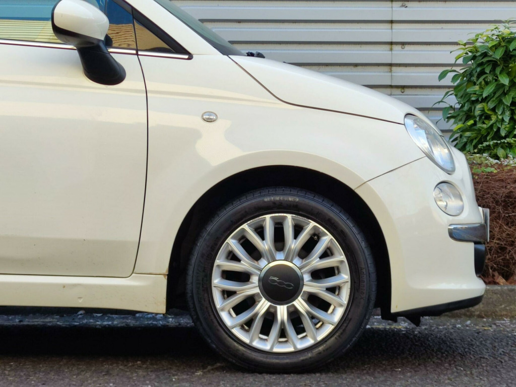 This 2012 Fiat 500 Lounge is presented with a full service history and a fresh 12 months MOT, offering excellent peace of mind. This particular model boasts a 1.2L petrol engine and has covered a modest 58,000 miles, making it a low mileage example for its age. The Lounge trim level comes with a range of attractive features, including stylish 16 inch alloy wheels, dark tinted rear windows for added privacy, and a selection of unique city stickers, hands stickers, and flowers stickers that give this Fiat 500 a distinctive personality.You will appreciate the impressive fuel economy of this Fiat 500, achieving an outstanding 59 miles per gallon, which is a significant advantage over many other vehicles. Furthermore, its low CO2 emissions and low insurance group rating mean that running costs are kept to a minimum, making it an economical choice for everyday driving. These highlights demonstrate how this Fiat 500 Lounge offers a more cost effective and efficient motoring experience compared to similar cars on the market.. 15in Alloy Wheels, ABS - Anti-Lock Braking System, Air Conditioning, Airbags - Driver, Airbags - Front Side, Airbags - Passenger, Black ambience, Blue&Me - Hands Free System with USB Port, Body colour door mirrors, Chrome Kit, Drivers Knee Airbag, EBD - Electronic Brakeforce Distribution, Electric Front Windows, Electrically Adjustable Heated Door Mirrors, Fixed Glass Roof with Sunblind, Fixed Glass Sunroof with sunblind, ISOFIX Child Seat Attachments, Ivory ambience, Lounge Interior Trim, Power Steering - Dualdrive Electric, Radio-CD and MP3 Player, Remote Central Locking, Space Saver Spare Wheel, Split Folding 50:50 Rear Seat, Steering Wheel - Height Adjustment, Steering Wheel - Leather with Audio Controls, Window Airbags, Blue&Me - Predisposition for TomTom, Hi- Fi System with 100W subwoofer, Hi-Fi Sound System with Subwoofer, Front FogLights, Fog Lights, 15in Alloy Wheels - Sport, 16in Alloy Wheels, Ball stickers, Barcode stripe- Black, Barcode stripe- White, Body colour side rubbing strips with 500 logo, Body colour side rubbing strips with space for badge, 15in Sports Alloy Wheels, Body Coloured Side Rubbing Strips with Space for Badge, Body Coloured Side Rubbing Strips with 500 Logo, Butterfly stickers, Chrome door mirror housings, Chrome line on bonnet, Dark Tinted Rear Windows, City stickers, Door Mirrors - Chrome Finish, Electric SkyDome opening Sunroof, Electric Sunroof, Flowers stickers, Hands stickers, Italian flag stripe with 500 on roof, Humanoid stickers, Side stripe- Italy, Side stripe- Red, Side stripe- White, Stickers - Butterfly, Stickers - City, Stickers - Flowers, Side stripe- Black, Stickers - Hands, Stickers - Humanoids, Stickers - Number 5, Stickers - Zipper, Stripe - All Designs, Zip stickers, 500 Stripe- Black, 500 Stripe- Red, 500 Stripe- White, Auto Climate Control, Cloth - Black, Climate Control - Automatic Dual Zone, Cloth - Blue/Ivory, Cloth - Grey/Black, Cloth - Black/Ivory, Cloth - Grey/Ivory, Cloth- Lounge, Cloth- Lounge- Black & Ivory with Black ambience, Cloth- Lounge- Blue & Ivory, Cloth- Pop- Dark Grey with Black ambience, Cloth- Pop- Dark Grey with Ivory ambience, Cloth- Pop- Red with Black ambience, Electrochromatic Rear View Mirror, Cloth- Pop- Red with Ivory ambience, Front Passenger Seat Memory, Cloth- Pop- Blue, Leather Gear Knob, Leather Interior - Black, Cloth- Pop, Leather Interior - Ivory/Vintage, Leather Interior - Red/Black, Leather- Black, Leather- Leather, Leather- Red, Leather- Vintage, Number 5- Black, Number 5- White, Number 5- Red, Pop Interior Trim, Seats - Passengers Memory Function, Steering Wheel - Paddles, Cloth- Lounge- Black & Ivory with Ivory ambience. Full service history
