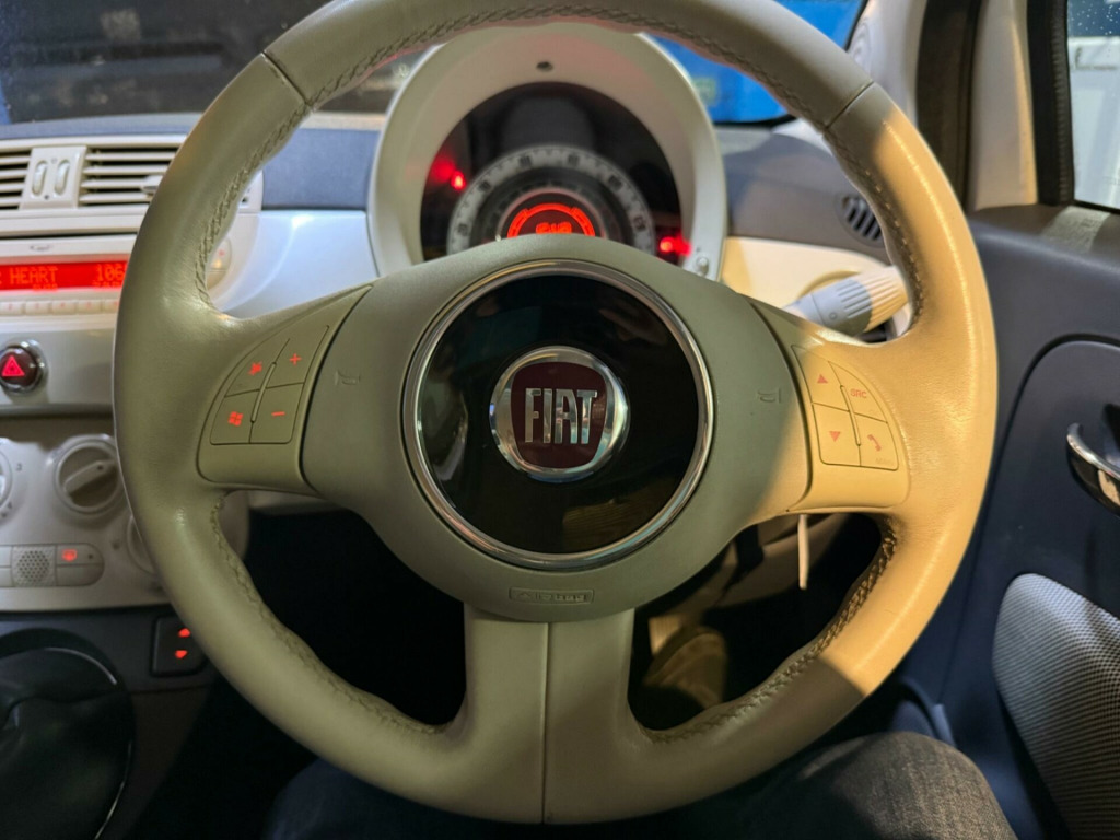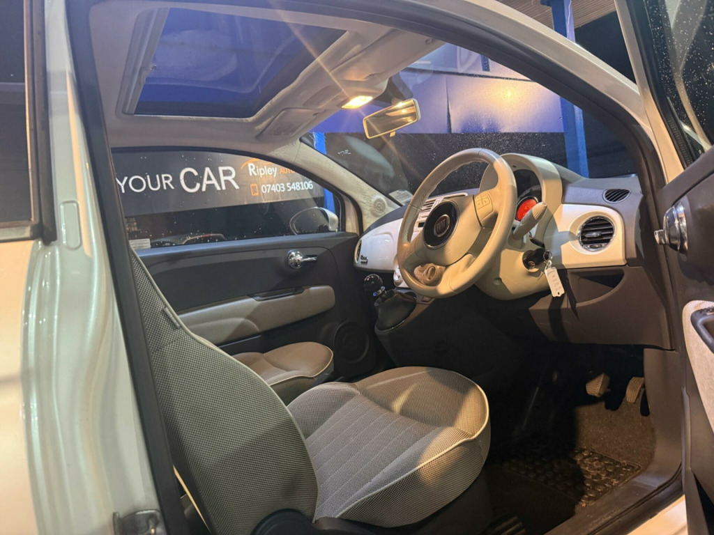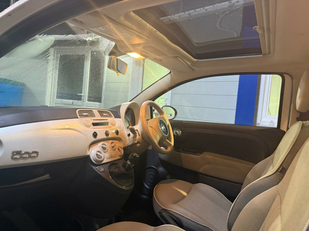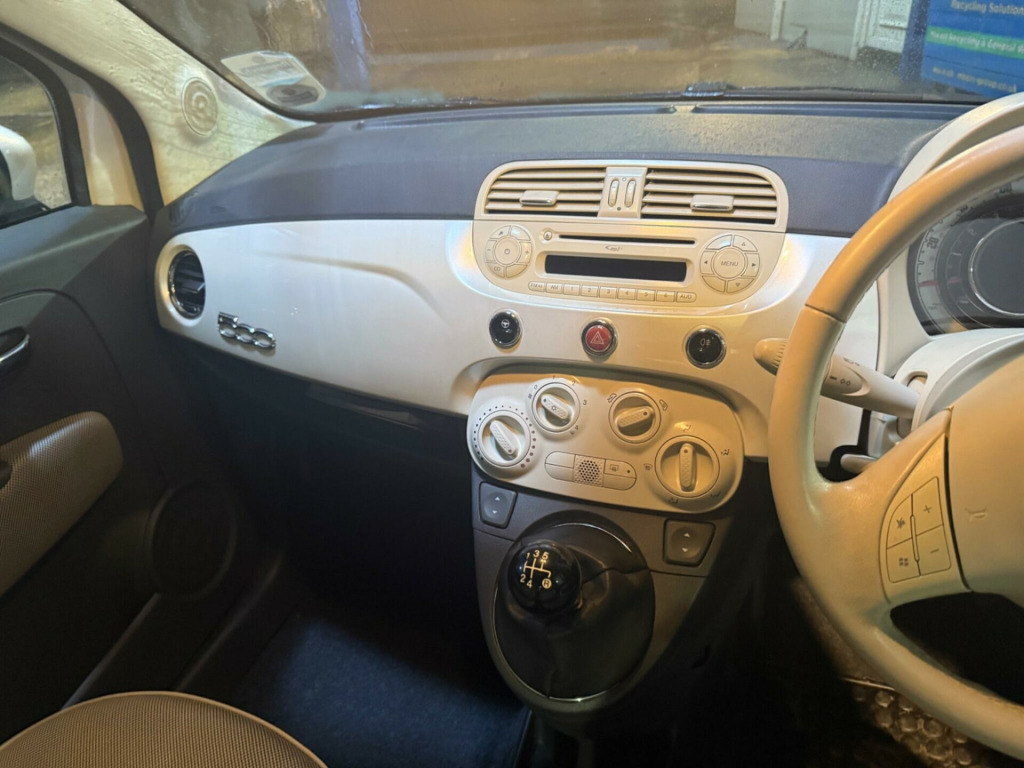 This 2009 Fiat 500 Lounge is a truly special find, boasting a clear vehicle history check and having been cherished by only two owners from new. Under the bonnet, you'll find a reliable 1.2 litre petrol engine, paired with the desirable Lounge trim. This particular model comes with a fixed glass roof, complete with a sunblind and a panoramic sunroof effect, offering a bright and airy cabin. For your convenience, it also features air conditioning to keep you comfortable and the Blue&Me hands free system with a USB port, allowing for seamless Bluetooth connectivity. Adding a touch of style, it includes body coloured side rubbing strips with the iconic 500 logo.This Fiat 500 Lounge offers excellent running costs, making it a smart choice. Its impressive fuel economy of 59 miles per gallon is a significant advantage over many other cars, meaning fewer trips to the petrol station. Furthermore, its low CO2 emissions are beneficial, and it sits in a low insurance group, which can help to keep your annual running expenses down. These factors combined indicate that this vehicle offers a more economical and affordable ownership experience compared to similar models on the market. in alloy wheels, abs - anti-lock braking system, air conditioning, airbags - driver, airbags - front side, airbags - passenger, black ambience, blue&me - hands free system with usb port, body colour door mirrors, chrome kit, drivers knee airbag, ebd - electronic brakeforce distribution, electric front windows, electrically adjustable heated door mirrors, fixed glass roof with sunblind, fixed glass sunroof with sunblind, isofix child seat attachments, ivory ambience, lounge interior trim, power steering - dualdrive electric, radio-cd and mp3 player, remote central locking, space saver spare wheel, split folding 50:50 rear seat, steering wheel - height adjustment, steering wheel - leather with audio controls, window airbags, body colour side rubbing strips with 500 logo, 15in alloy wheels - sport