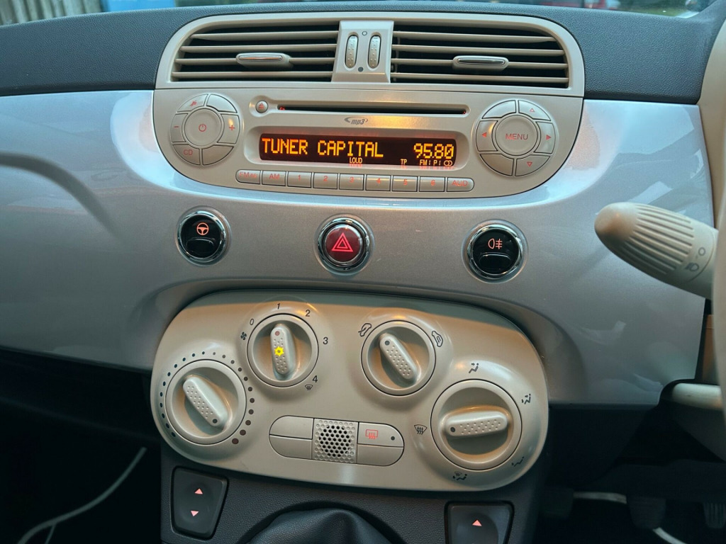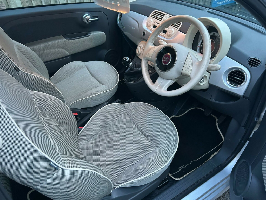 This 2009 Fiat 500 Lounge is a truly special find, boasting a clear vehicle history check and having been cherished by only two owners. Powered by an efficient 1.2 litre petrol engine, this Lounge variant comes with the desirable Blue&Me hands free system featuring a USB port and Bluetooth connectivity, alongside air conditioning to keep you comfortable. You'll also enjoy the fixed glass roof with its integrated sunblind, offering a bright and airy cabin experience.This Fiat 500 Lounge offers excellent value, with a remarkable fuel economy of 59 miles per gallon, making it an economical choice for your daily journeys. Its low CO2 emissions and placement in a low insurance group further highlight its cost effectiveness compared to many other vehicles. These factors combined indicate that this particular Fiat 500 Lounge is a more sensible and affordable option for drivers. in alloy wheels, abs - anti-lock braking system, air conditioning, airbags - driver, airbags - front side, airbags - passenger, black ambience, blue&me - hands free system with usb port, body colour door mirrors, chrome kit, drivers knee airbag, ebd - electronic brakeforce distribution, electric front windows, electrically adjustable heated door mirrors, fixed glass roof with sunblind, fixed glass sunroof with sunblind, isofix child seat attachments, ivory ambience, lounge interior trim, power steering - dualdrive electric, radio-cd and mp3 player, remote central locking, space saver spare wheel, split folding 50:50 rear seat, steering wheel - height adjustment, steering wheel - leather with audio controls, window airbags