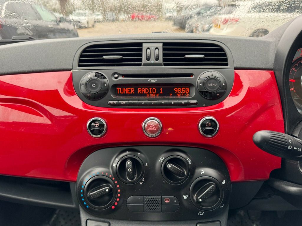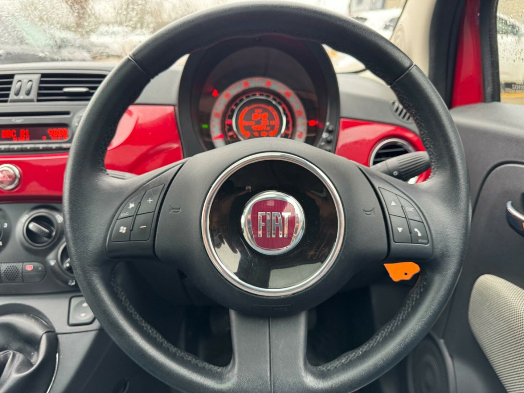 This 2009 Fiat 500 Lounge is presented with a clear vehicle history check. This vehicle is a part exchange to clear. This stylish hatchback features a 1.2 litre petrol engine and the desirable Lounge trim, which includes a fixed glass roof with a sunblind, providing a panoramic sunroof experience. You'll also find chrome door mirror housings that add a touch of elegance. For convenience, it is equipped with rear parking sensors and a rear camera to assist with parking, along with the Blue&Me hands free system complete with a USB port and Bluetooth connectivity. Comfort is assured with air conditioning.This Fiat 500 Lounge stands out with its impressive fuel economy, achieving up to 59 miles per gallon, which indicates it is more economical than many other vehicles in its class. Furthermore, its low CO2 emissions and low insurance group rating suggest that running costs are kept to a minimum, making it an attractive and sensible choice for a wide range of drivers. in alloy wheels, abs - anti-lock braking system, air conditioning, airbags - driver, airbags - front side, airbags - passenger, black ambience, blue&me - hands free system with usb port, body colour door mirrors, chrome kit, drivers knee airbag, ebd - electronic brakeforce distribution, electric front windows, electrically adjustable heated door mirrors, fixed glass roof with sunblind, fixed glass sunroof with sunblind, isofix child seat attachments, ivory ambience, lounge interior trim, power steering - dualdrive electric, radio-cd and mp3 player, remote central locking, space saver spare wheel, split folding 50:50 rear seat, steering wheel - height adjustment, steering wheel - leather with audio controls, window airbags, rear parking sensor, chrome door mirror housings
