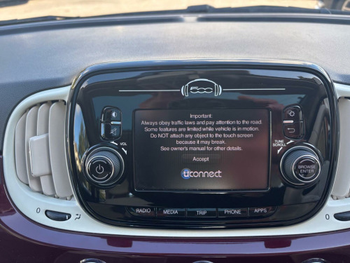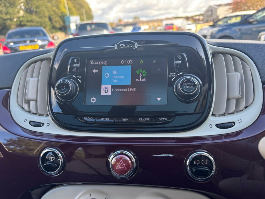 WE ARE PLEASED TO OFFER THIS HIGHLY DESIRABLE HIGH SPECIFICATION HIGHLY MAINTAINED ECONOMICAL EURO SIX LOW INSURANCE RATED FIAT 500 1.2 LOUNGE THREE DOOR WHICH IS FINISHED IN THE BEST COLOUR OF ADVENTURER RED PEARL METALLIC PAINTWORK AND IS COMPLEMENTED WITH A BLACK-LIGHT GREY CLOTH AND PART IVORY ARTICO LEATHER UPHOLSTERY + ONLY A MERE 22,472 MILES HAS BEEN COVERED IN TOTAL AND IS BACKED WITH AN EXCEPTIONAL FULL SERVICE HISTORY WHICH IS COMPRISED OF SIX SERVICES + THE SERVICES HAVE BEEN CARRIED OUT AT 7593 MILES, 12829 MILES, 14516 MILES, 16386 MILES, 18159 MILES AND LAST SERVICED AT 22038 BY S G PETCH FIAT OF YORK ON THE 15TH OF AUGUST 2025 + THE MOT IS TILL THE 8TH OF SEPTEMBER 2026 + OUTSTANDING CONDITION THROUGHOUT AND DRIVES SUPERB + FULL LOUNGE SPECIFICATION WHICH INCLUDES A FIXED GLASS SUNROOF WITH BLIND / DAB TUNER / U-CONNECT /MULTI FUNCTION STEERING WHEEL / FULL ELECTRIC PACK / REAR PARKING PARKING DISTANCE CONTROL / BLUETOOTH HANDS FREE PHONE PACK / 15 ALLOY WHEELS PLUS MUCH MORE + HANDBOOK PACK +_ FULLY STAMPED SERVICE BOOK + 2 X KEYS + ANY TRIAL OR INSPECTION IS WELCOMED + HPI CLEAR WITH CERTIFICATE + SIX MONTHS NATIONWIDE WARRANTY IS INCLUDED + VIEWING IS ESSENTIAL TO APPRECIATE THIS TRULY CHERISHED EXAMPLE AND IT MUST NOT BE CONFUSED WITH LESSER EXAMPLES AVAILABLE. We have been established in Baildon for over 20 years. All our vehicles are fully inspected, prepared and valeted. We are finance specialists. Part exchange is welcome. All major credit and debits accepted. Open 7 days. Our postcode is BD177EX.